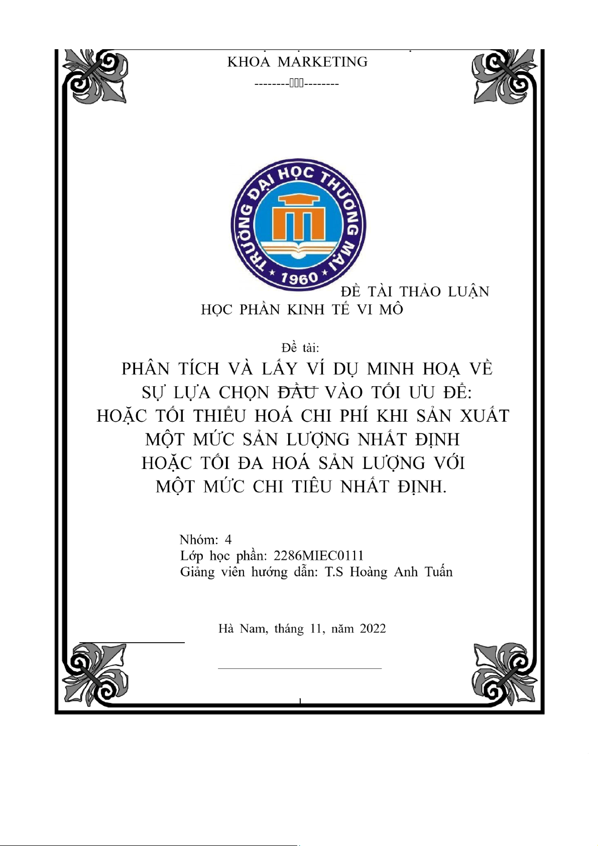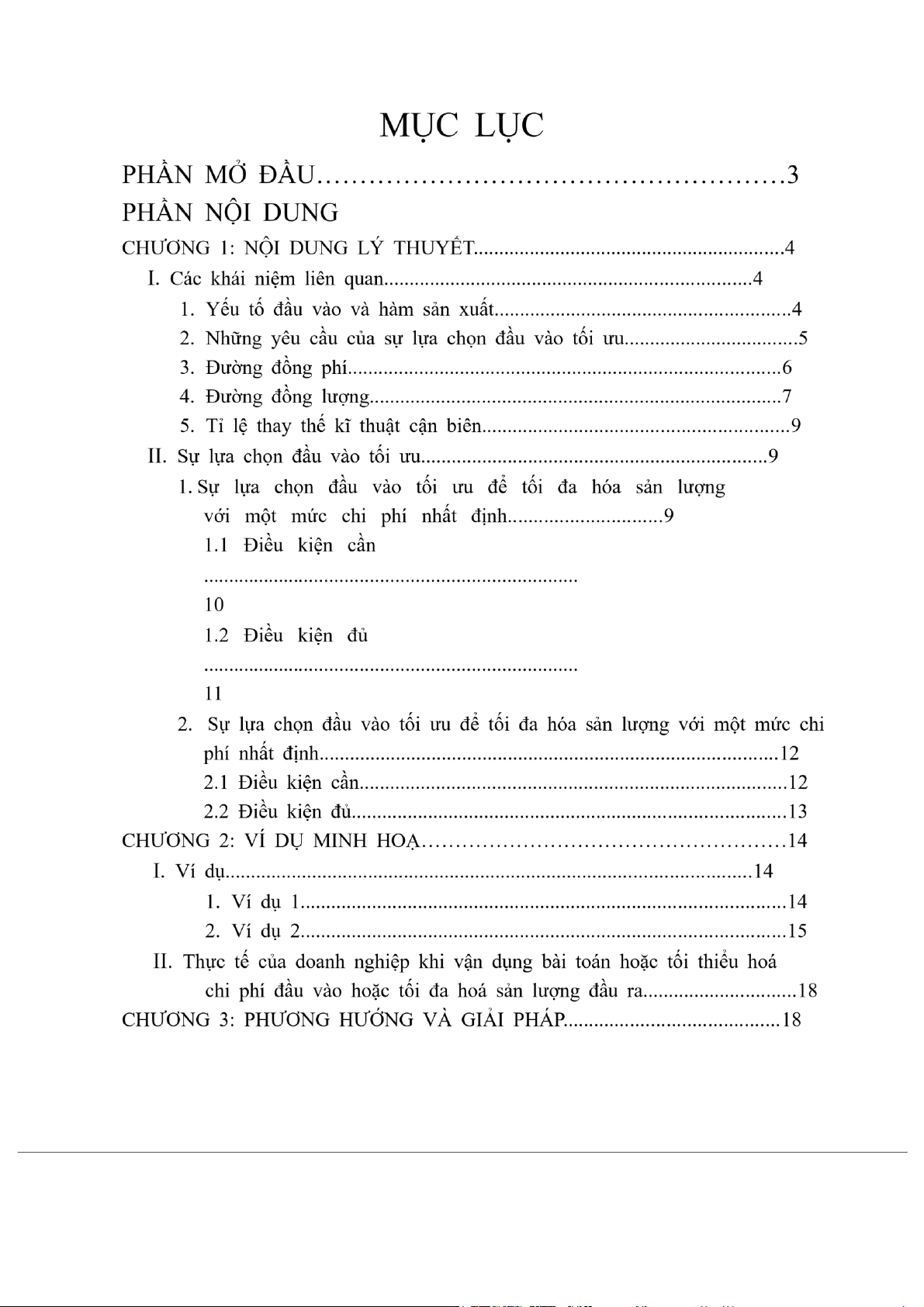 sản lượng nhất định hoặc tối đa hoá sản lượng với một mức chi tiêu nhất định”. 3.