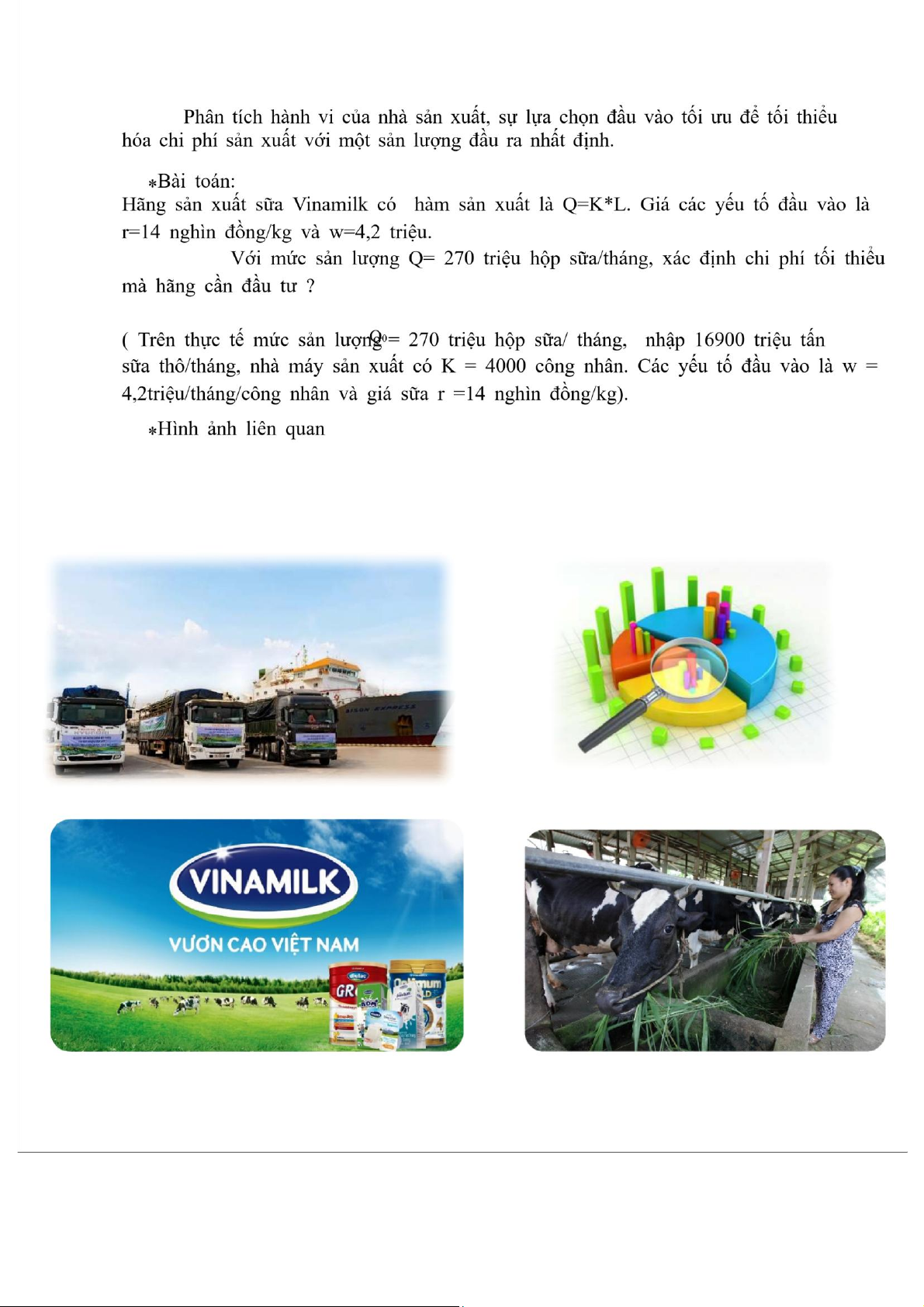 Vậy với chi phí 1 tỷ VNĐ thì công ty Vinamilk sản xuất được tối đa 8 , 3 triệu lít sữa. * Hình ảnh minh họa: 2. Ví dụ minh họa 2: 17 18 19