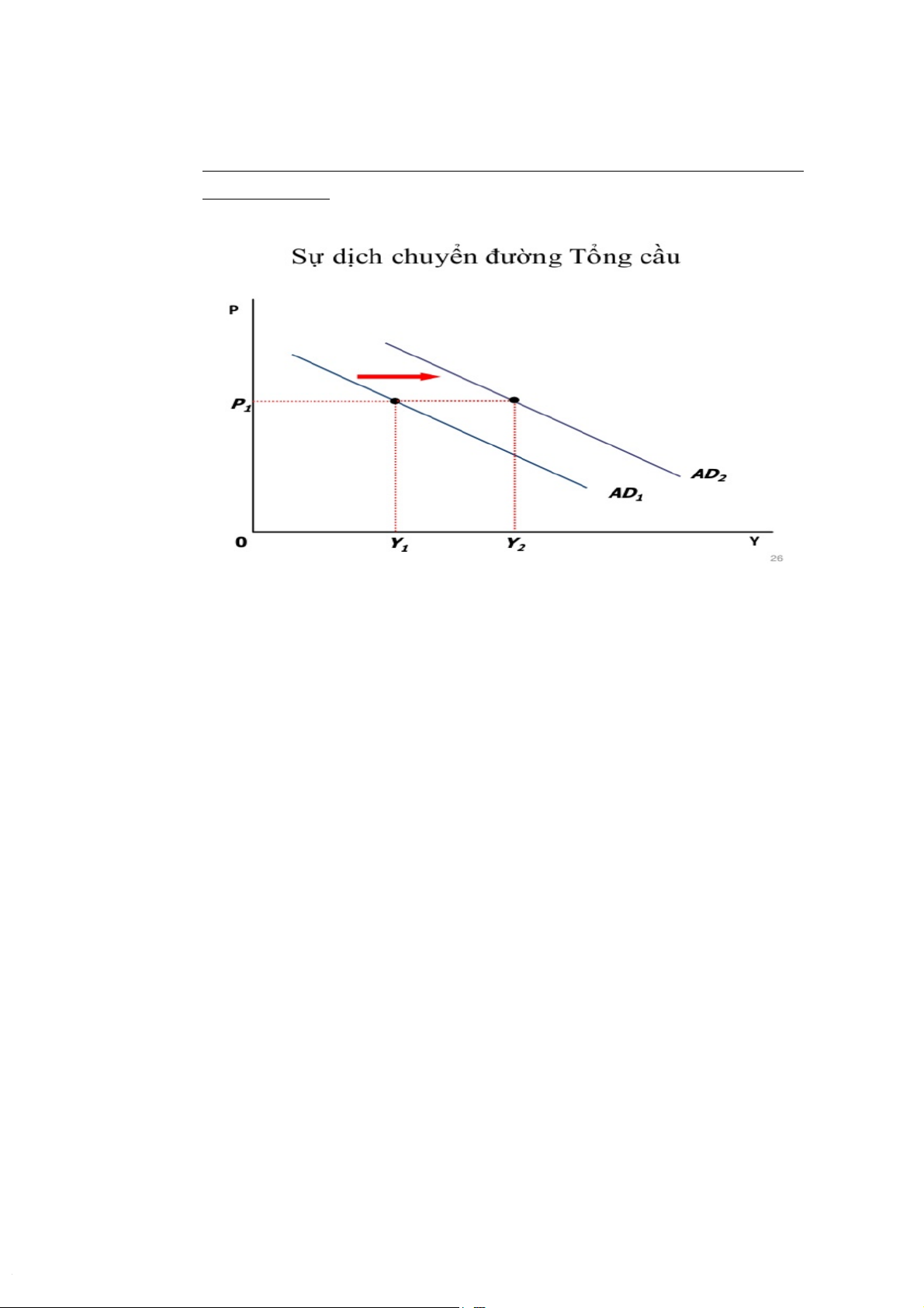 Thu nhập quốc dân Y tăng sẽ làm tổng cầu AD tăng, đường tổng cầu dịch