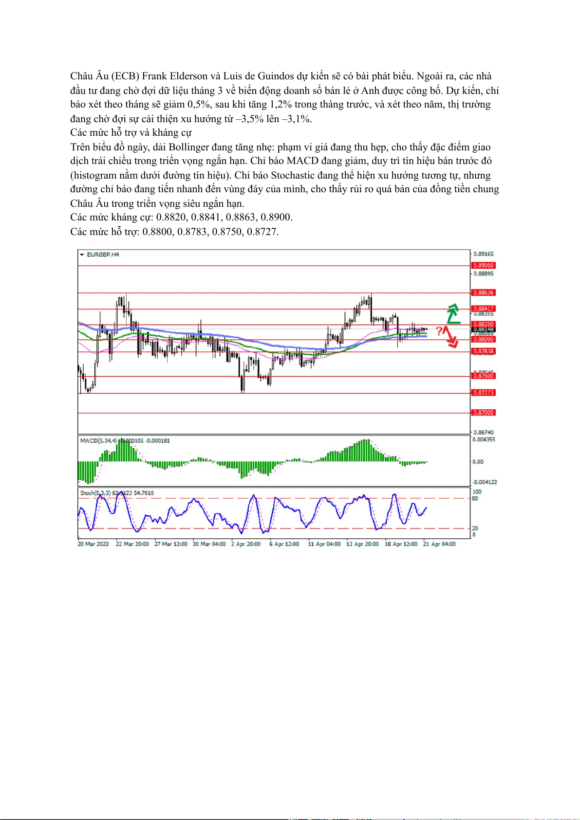 Các mức kháng cự: 0.8820, 0.8841, 0.8863, 0.8900.