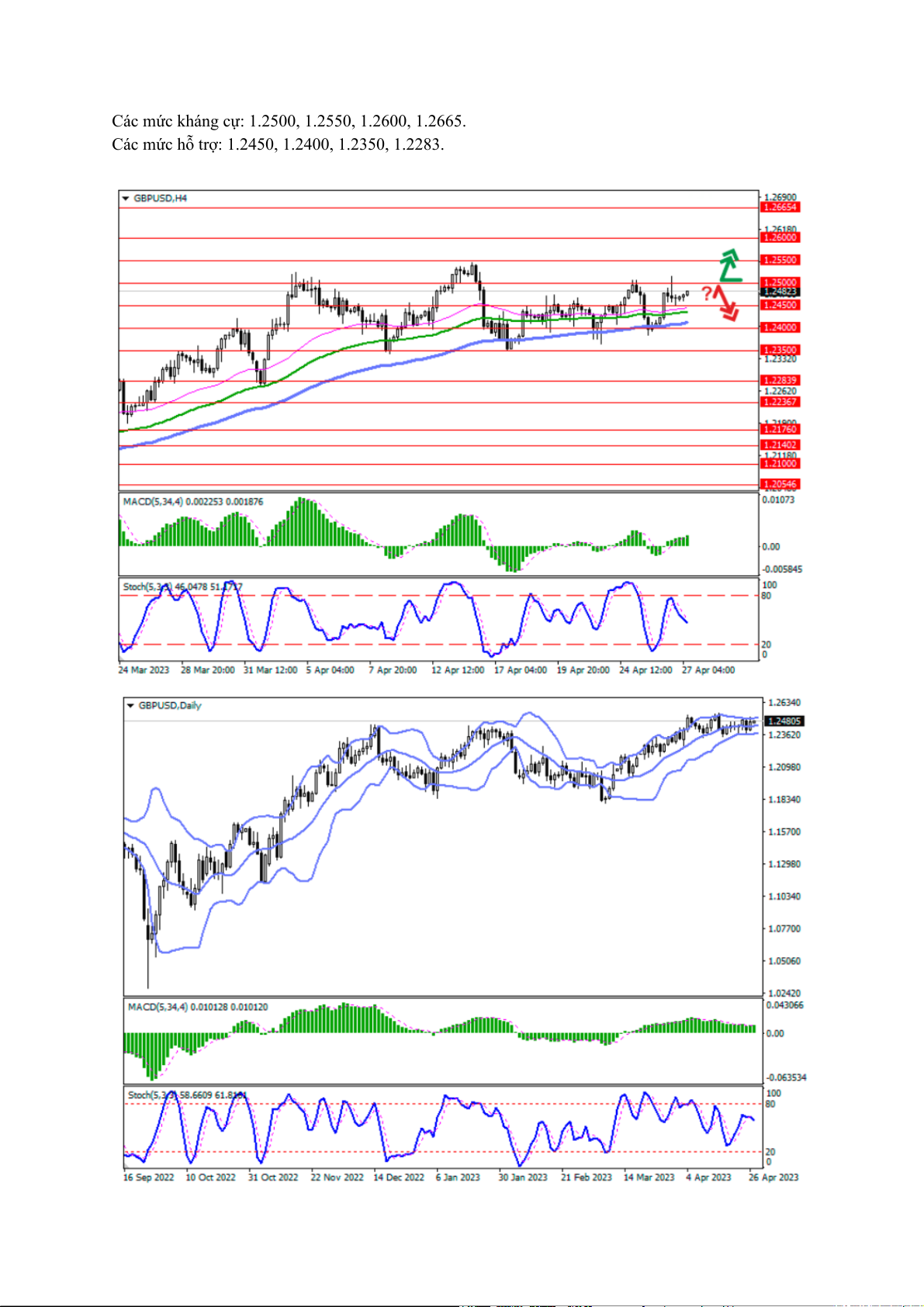 Các mức hỗ trợ: 1.2450, 1.2400, 1.2350, 1.2283. Các kịch bản giao dịch
