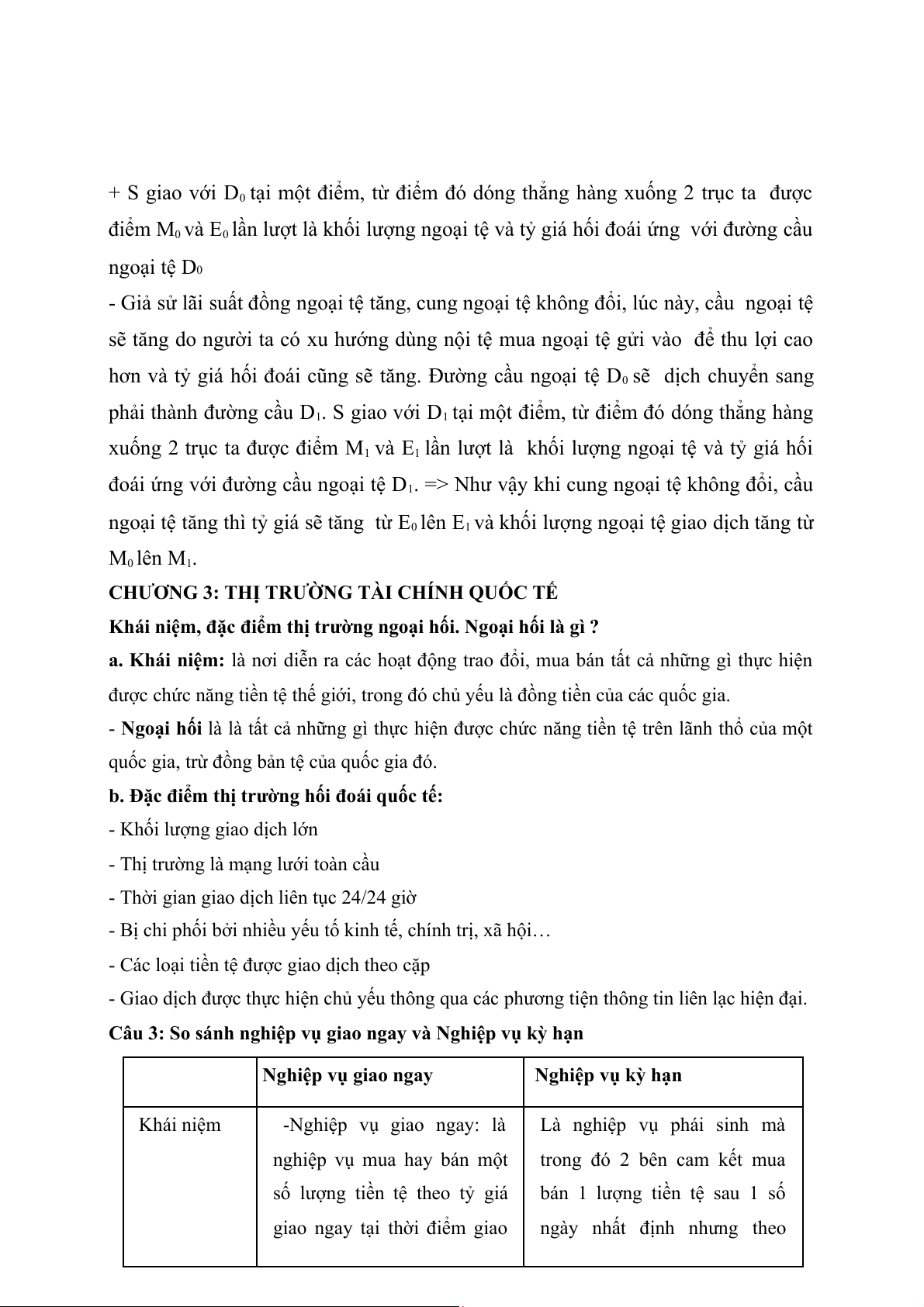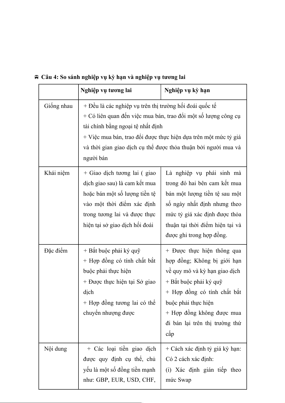 Câu 4: So sánh nghiệp vụ kỳ hạn và nghiệp vụ tương lai