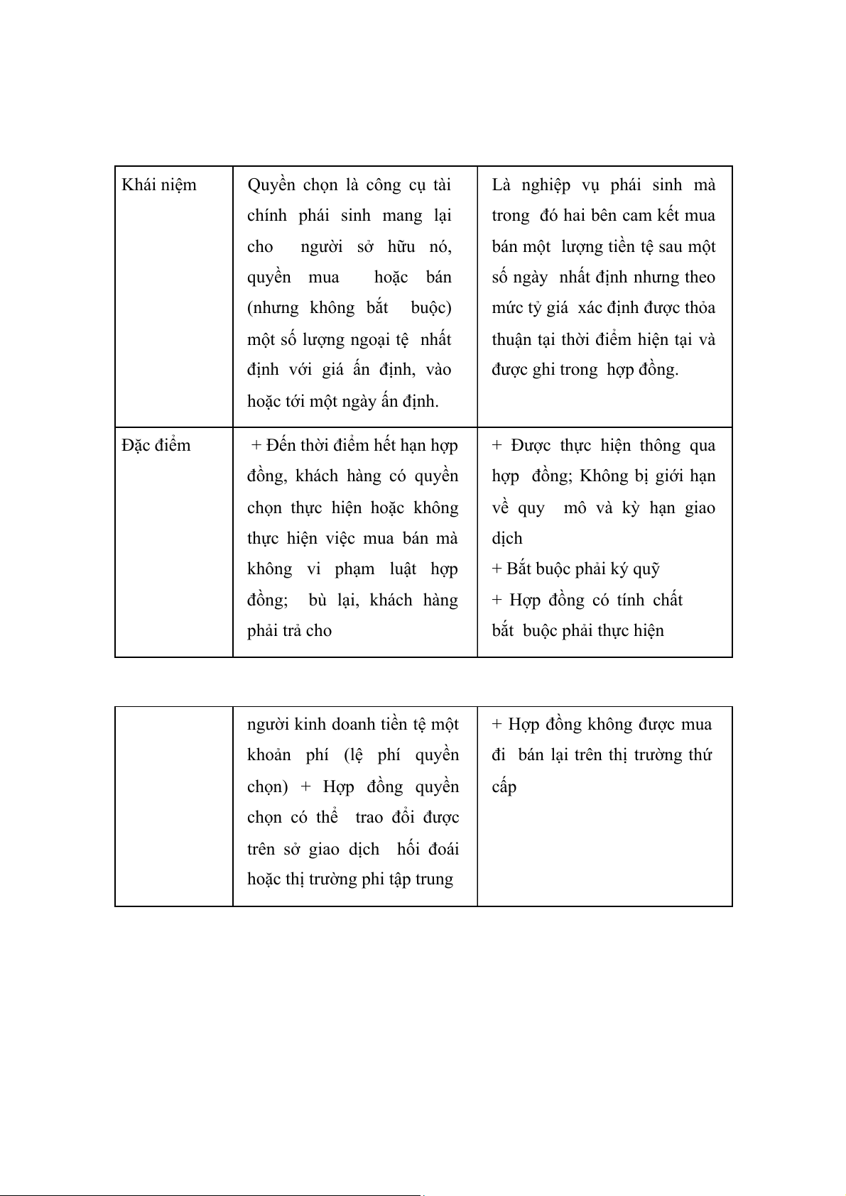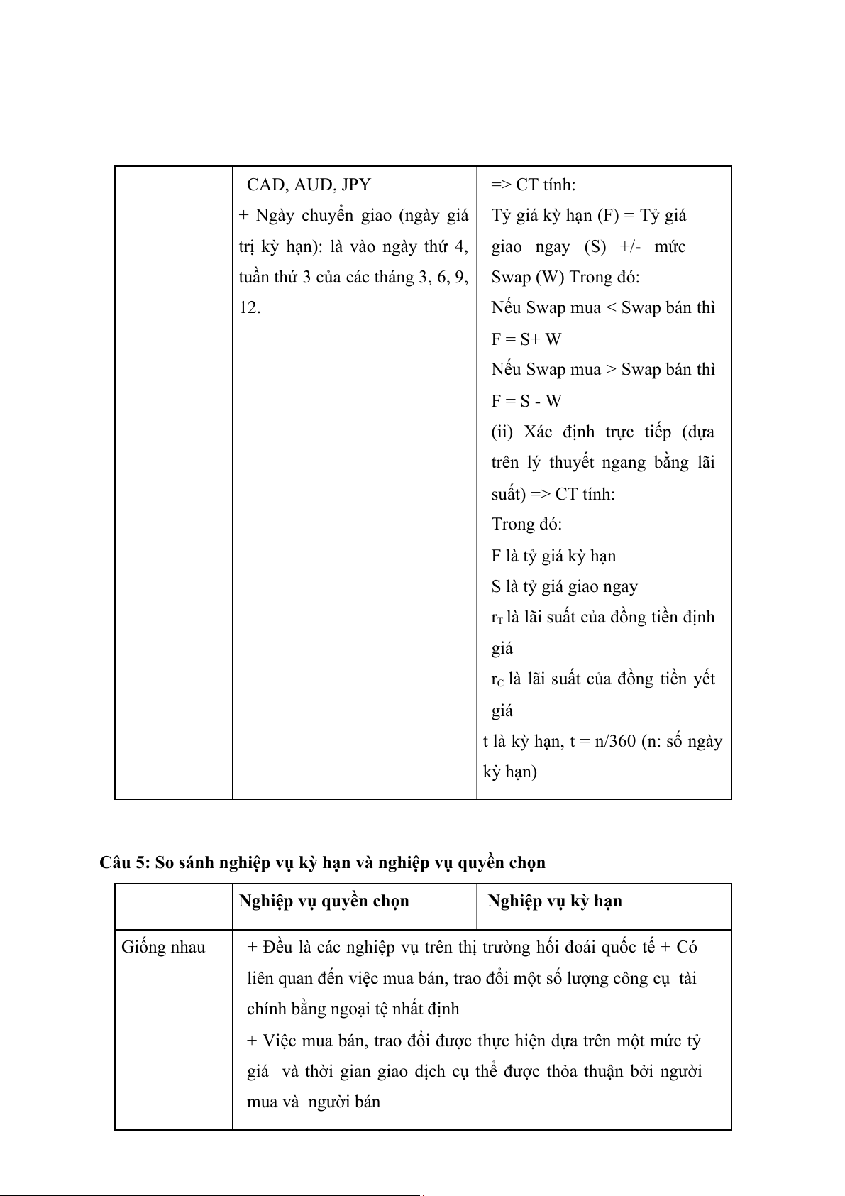 Câu 5: So sánh nghiệp vụ kỳ hạn và nghiệp vụ quyền chọn