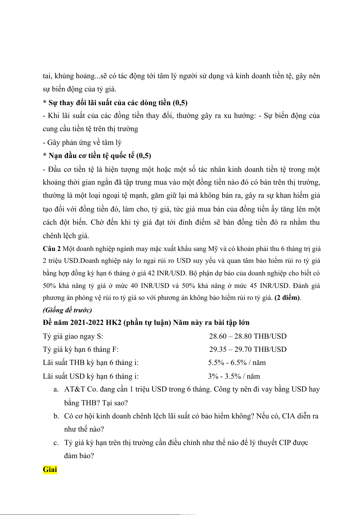 Câu 2 Một doanh nghiệp ngành may mặc xuất khẩu sang Mỹ và có khoản phải thu 6 tháng trị giá