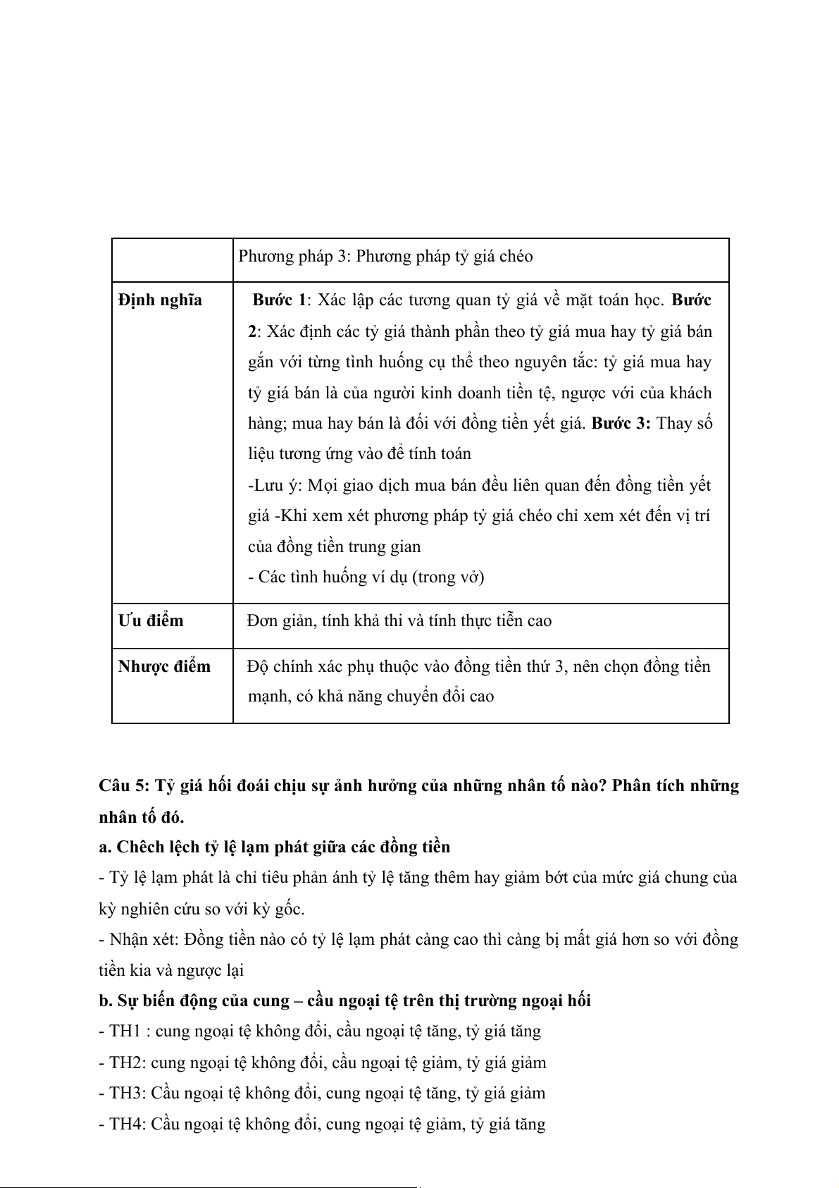 Câu 1: Tỷ giá hối đoái chịu sự ảnh hưởng của những nhân tố nào? Phân tích những nhân tố đó. (3 điểm)