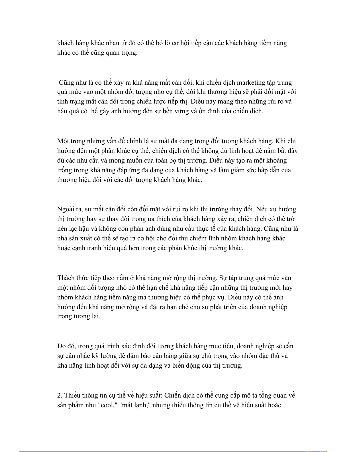đối tượng cụ thể, nhưng việc tập trung quá nhiều vào một nhóm khách hàng có thể dẫn