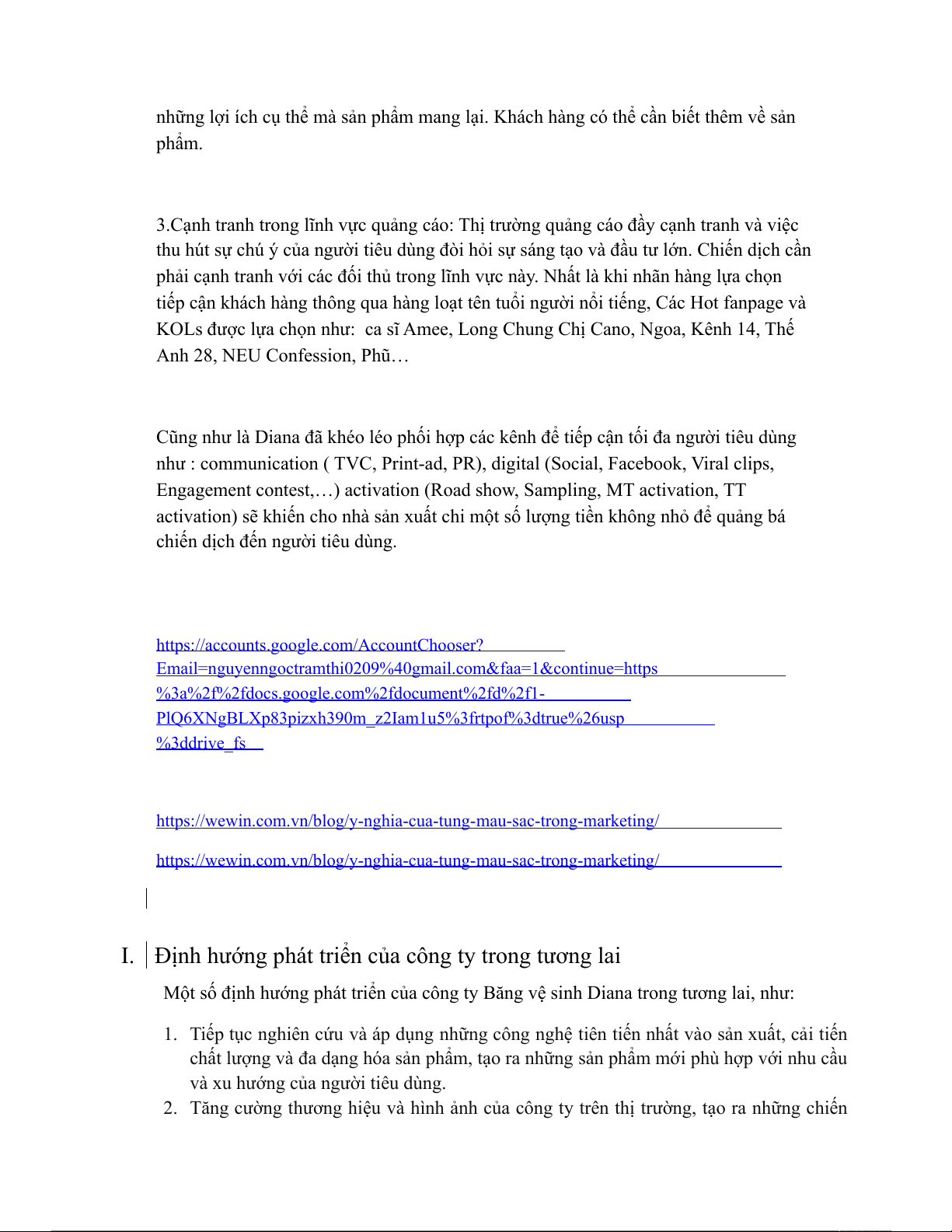 Một số định hướng phát triển của công ty Băng vệ sinh Diana trong tương lai, như: