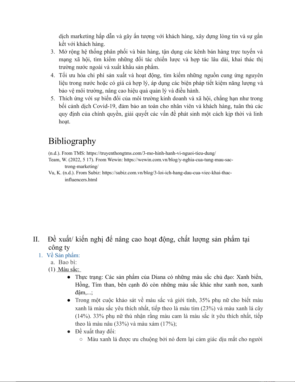 Đề xuất/ kiến nghị để nâng cao hoạt động, chất lượng sản phẩm tại công ty 1. Về Sản phẩm: a. Bao bì: (1) Màu sắc: