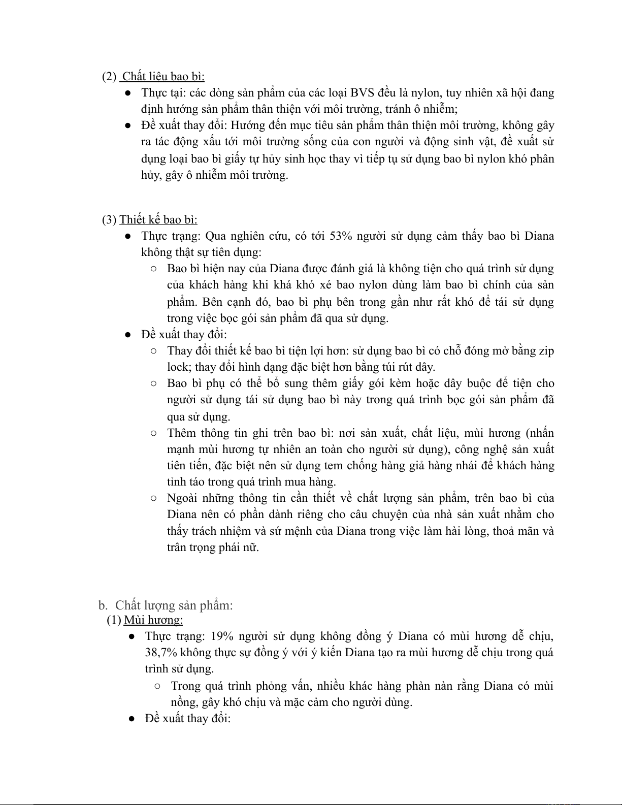 ● Thực trạng: Qua nghiên cứu, có tới 53% người sử dụng cảm thấy bao bì Diana