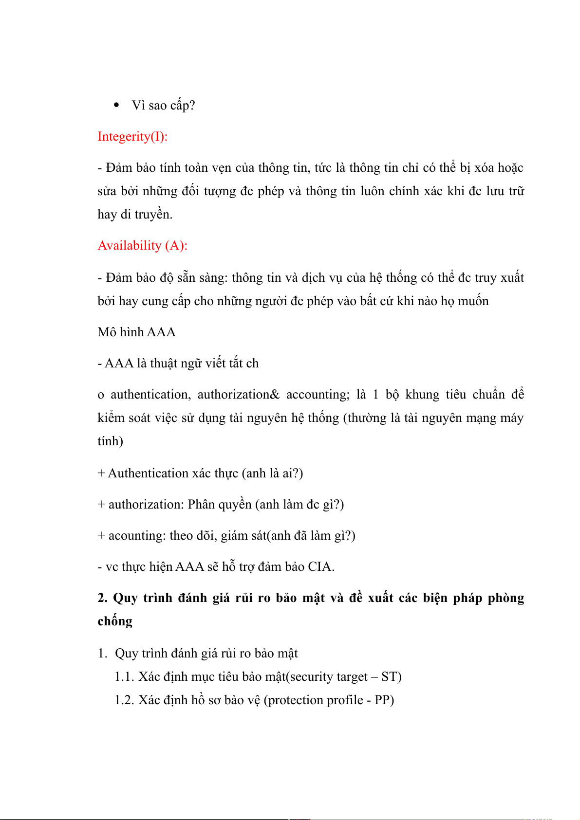 - vc thực hiện AAA sẽ hỗ trợ đảm bảo CIA.