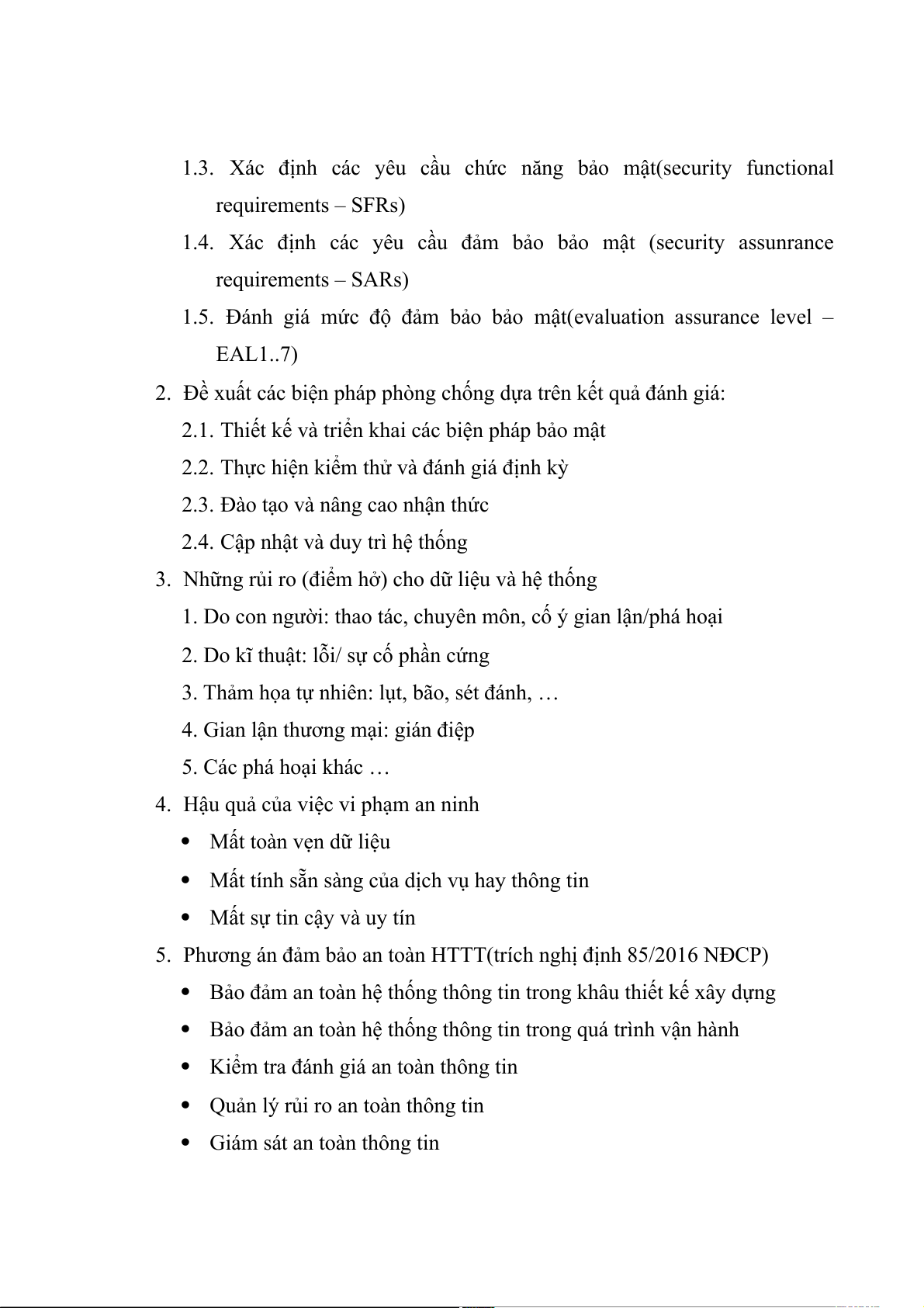 5. Phương án đảm bảo an toàn HTTT(trích nghị định 85/2016 NĐCP)