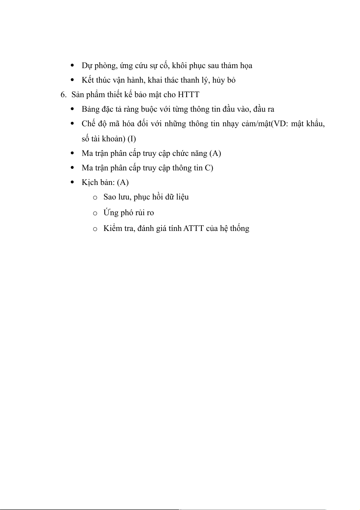 6. Sản phẩm thiết kế bảo mật cho HTTT