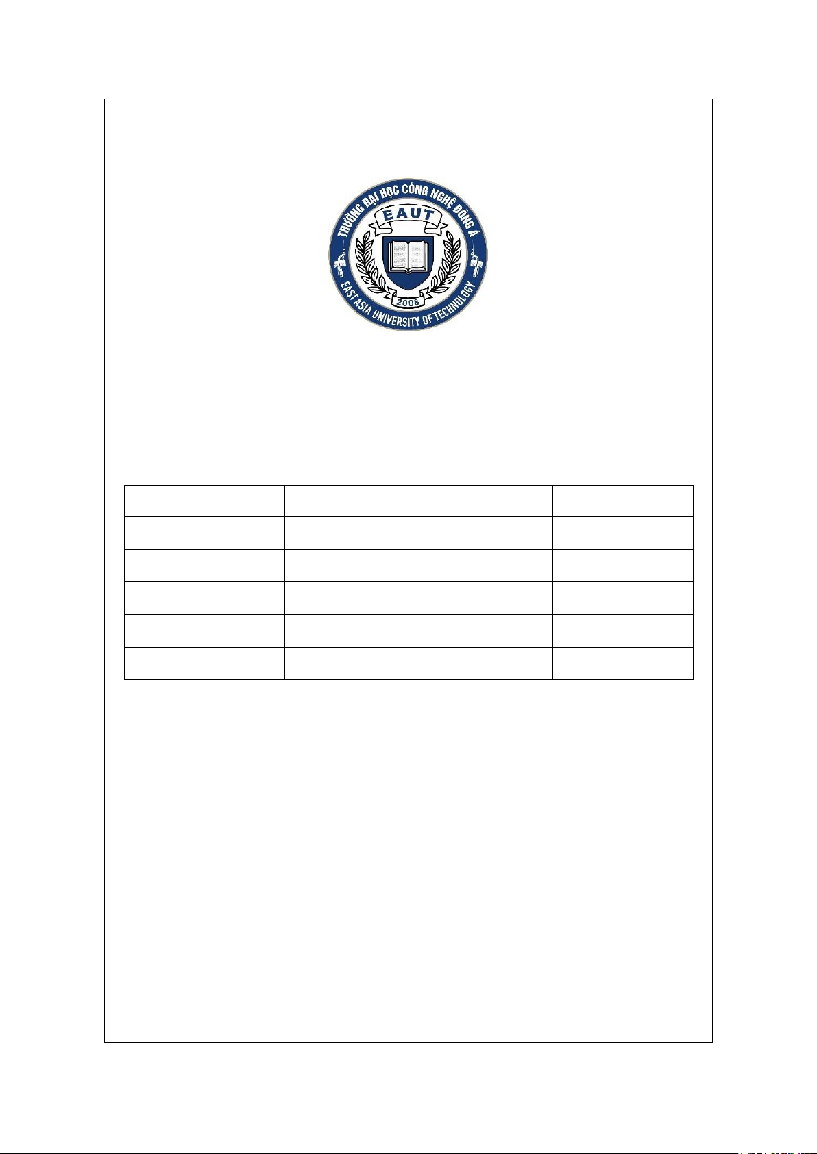 TRƯỜNG ĐẠI HỌC CÔNG NGHỆ ĐÔNG Á    BÀI TẬP LỚN