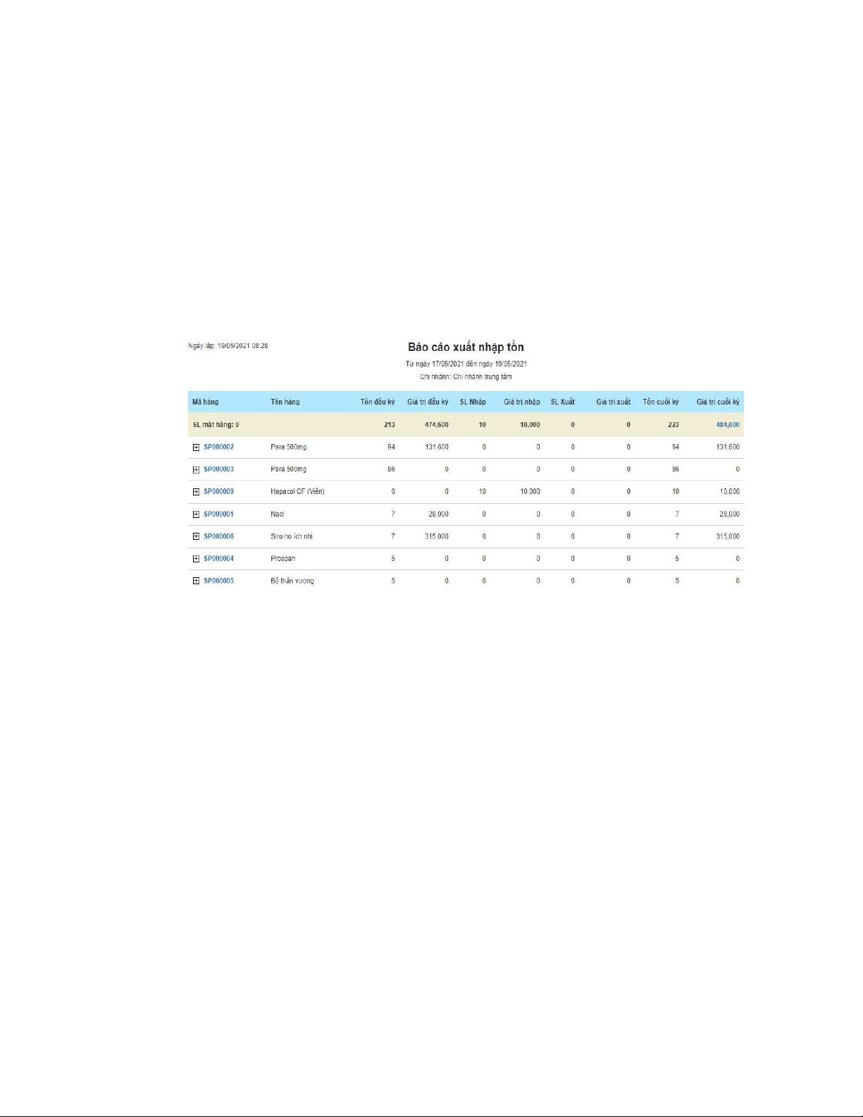 - Thường thì cuối mỗi ngày sẽ có một báo cáo về tình hình nhập-xuất hàng. Hơn