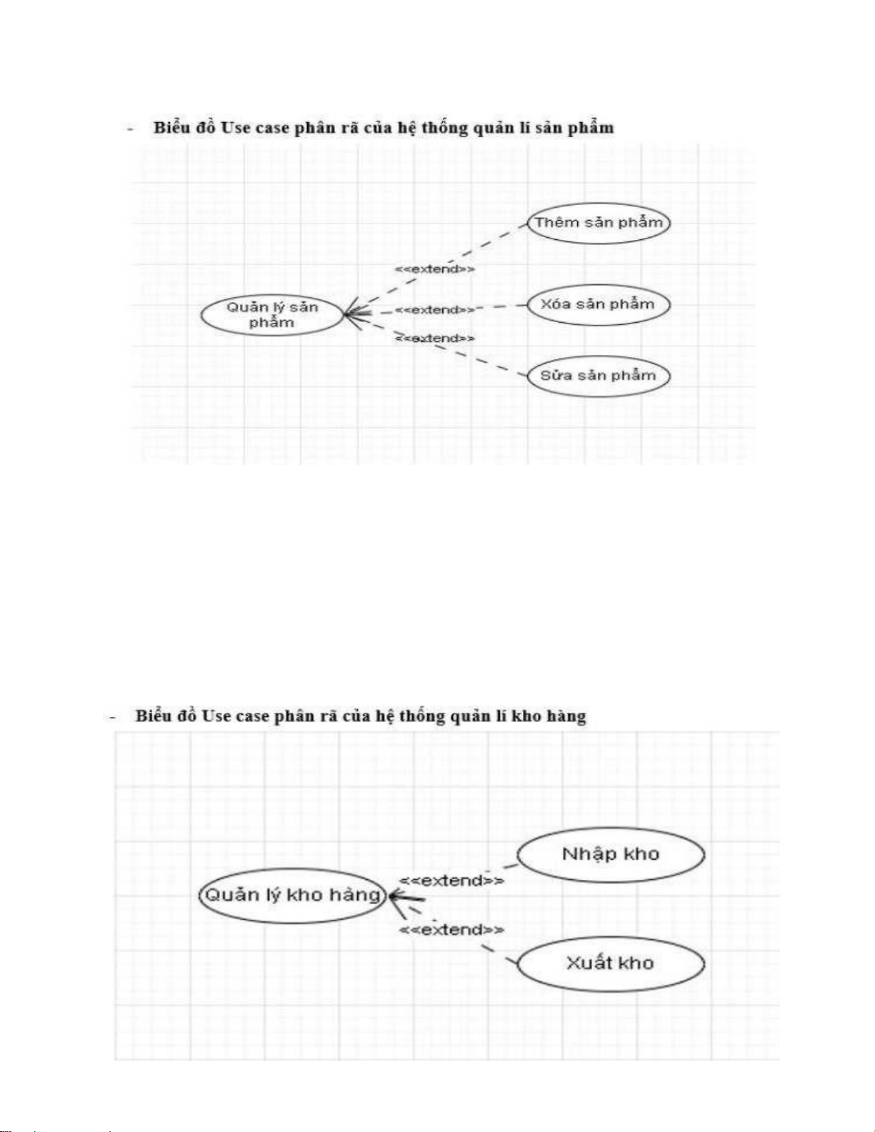 - Biểu đồ bao gồm một Use Case chính (Use Case gốc) là Quản lý sản phẩm và các Use