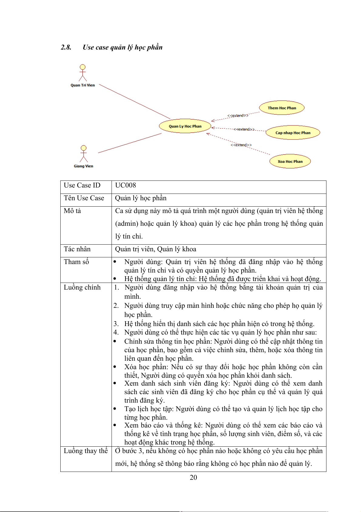 (admin) hoặc quản lý khoa) quản lý các học phần trong hệ thống quản lý tín chỉ. Tác nhân