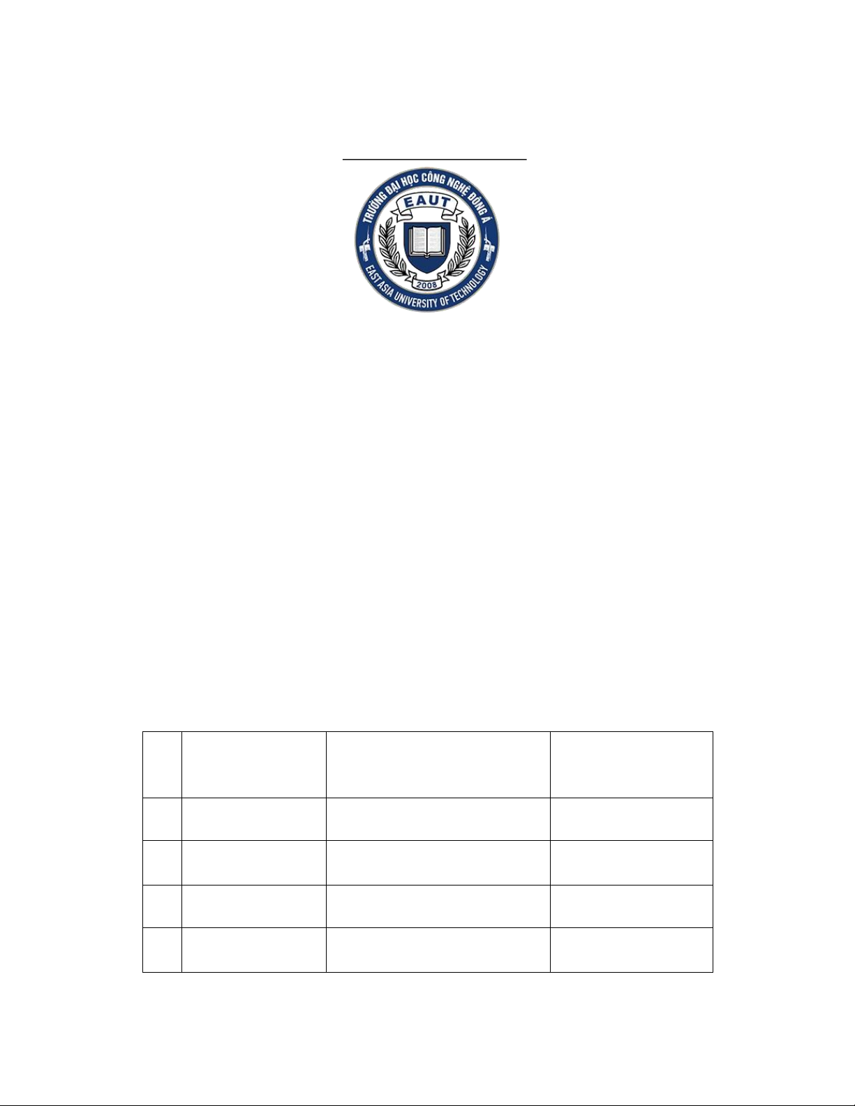 Sinh viên thực hiện  Lớp hành chính    1 20233086  Nguyễn Hữu Hà  DCCNTT.14.C.3  2 20232323  Chu Quang Dương  DCCNTT.14.C.3  3 20233039  Nguyễn Văn Giang  DCCNTT.14.C.3  4 20233454  Ngô Quý Dương  DCCNTT.14.C.3  Bắc Ninh – 2025    lOMoAR cPSD| 60734260 MỤC LỤC  Contents