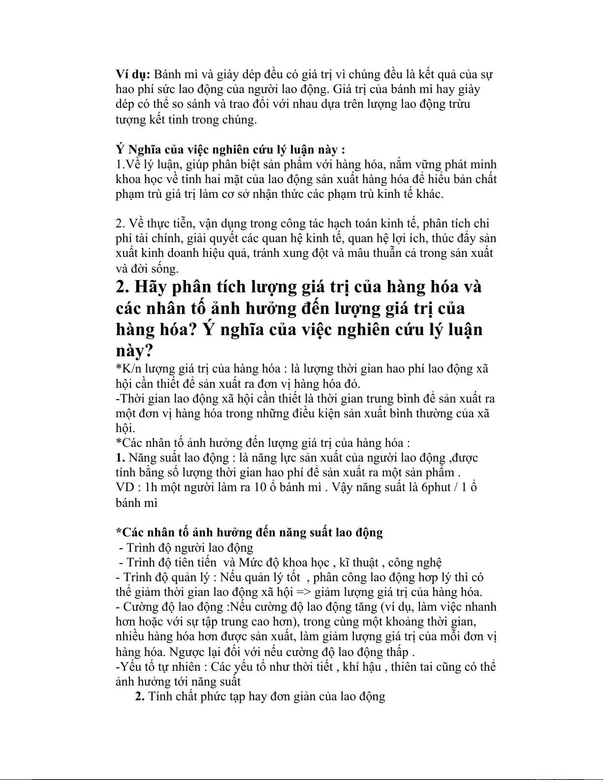 2. Hãy phân tích lượng giá trị của hàng hóa và