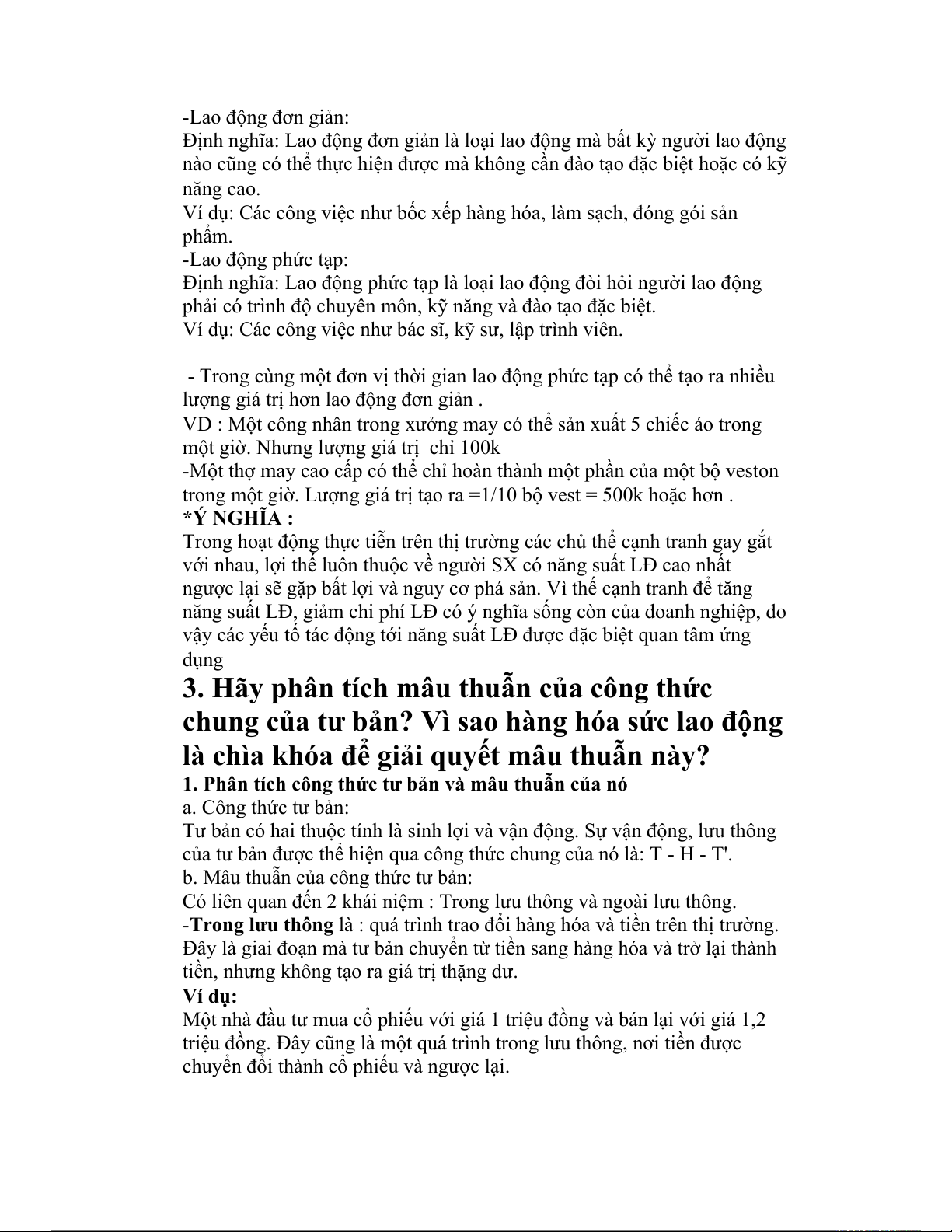 2. Tính chất phức tạp hay đơn giản của lao động -Lao động đơn giản:
