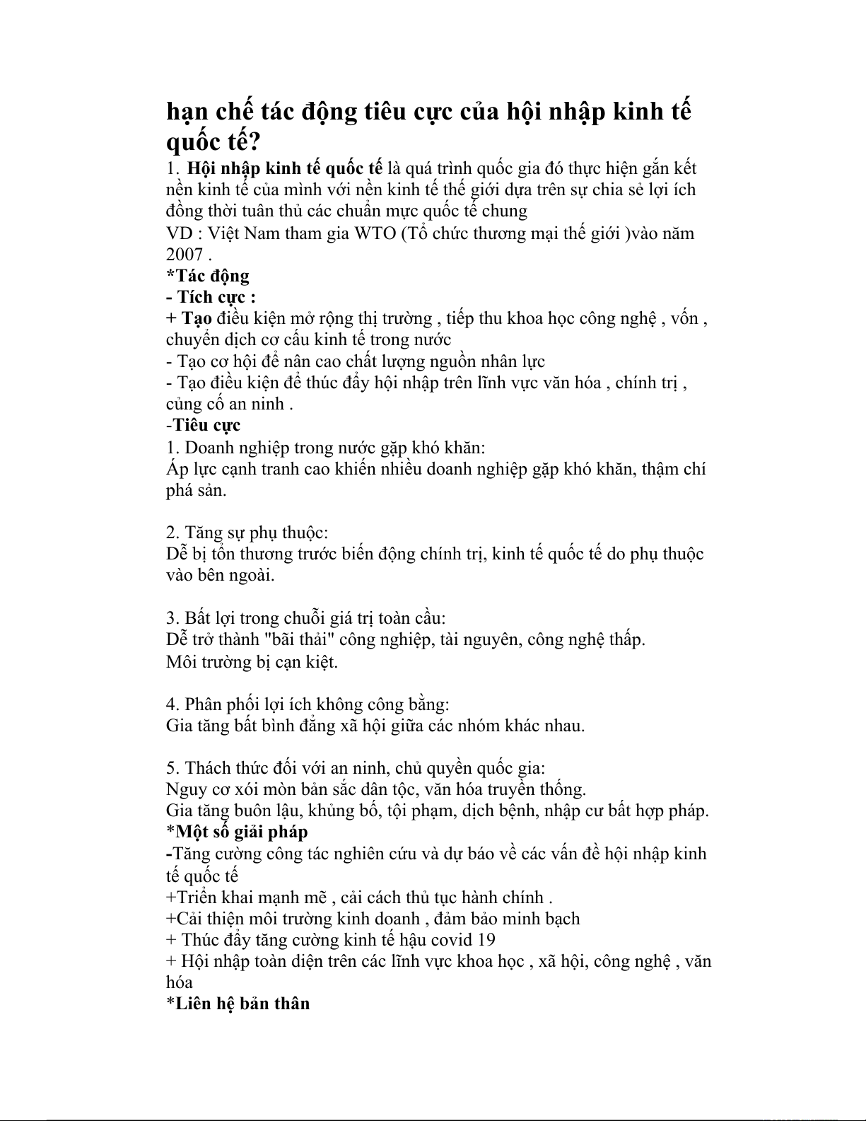 hạn chế tác động tiêu cực của hội nhập kinh tế quốc tế?