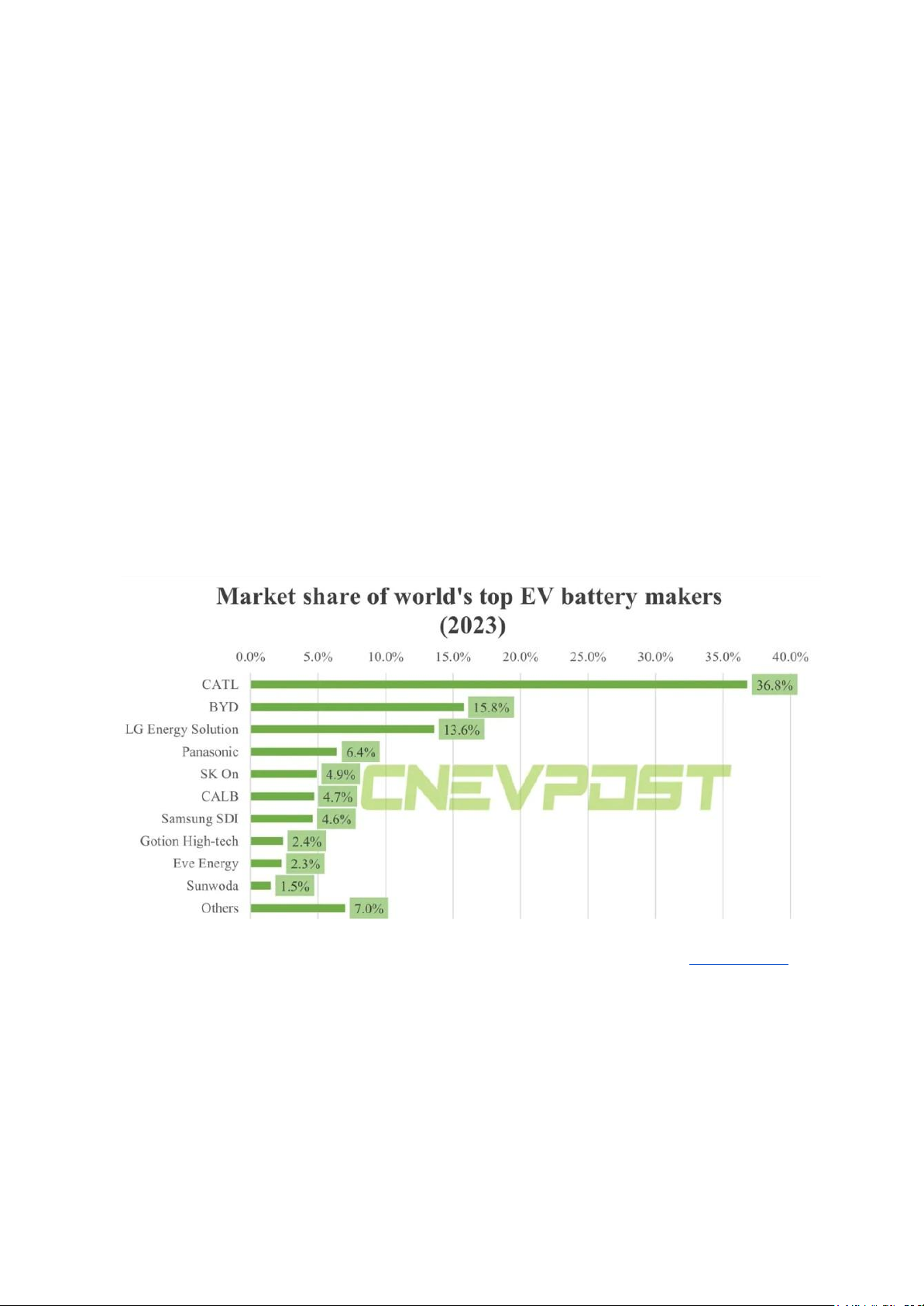 Theo CNEVPOST, trong năm 2023 CATL chiếm khoảng 36,8% thị phần pin xe điện