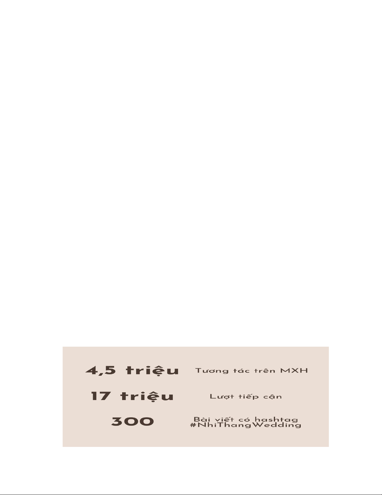 thì có đến 4,5 triệu tương tác trên mạng xã hội; 17 triệu lượt tiếp cận và 300 bài viết có hashtag #NhiThangWedding. 11 lOMoAR cPSD| 61785836