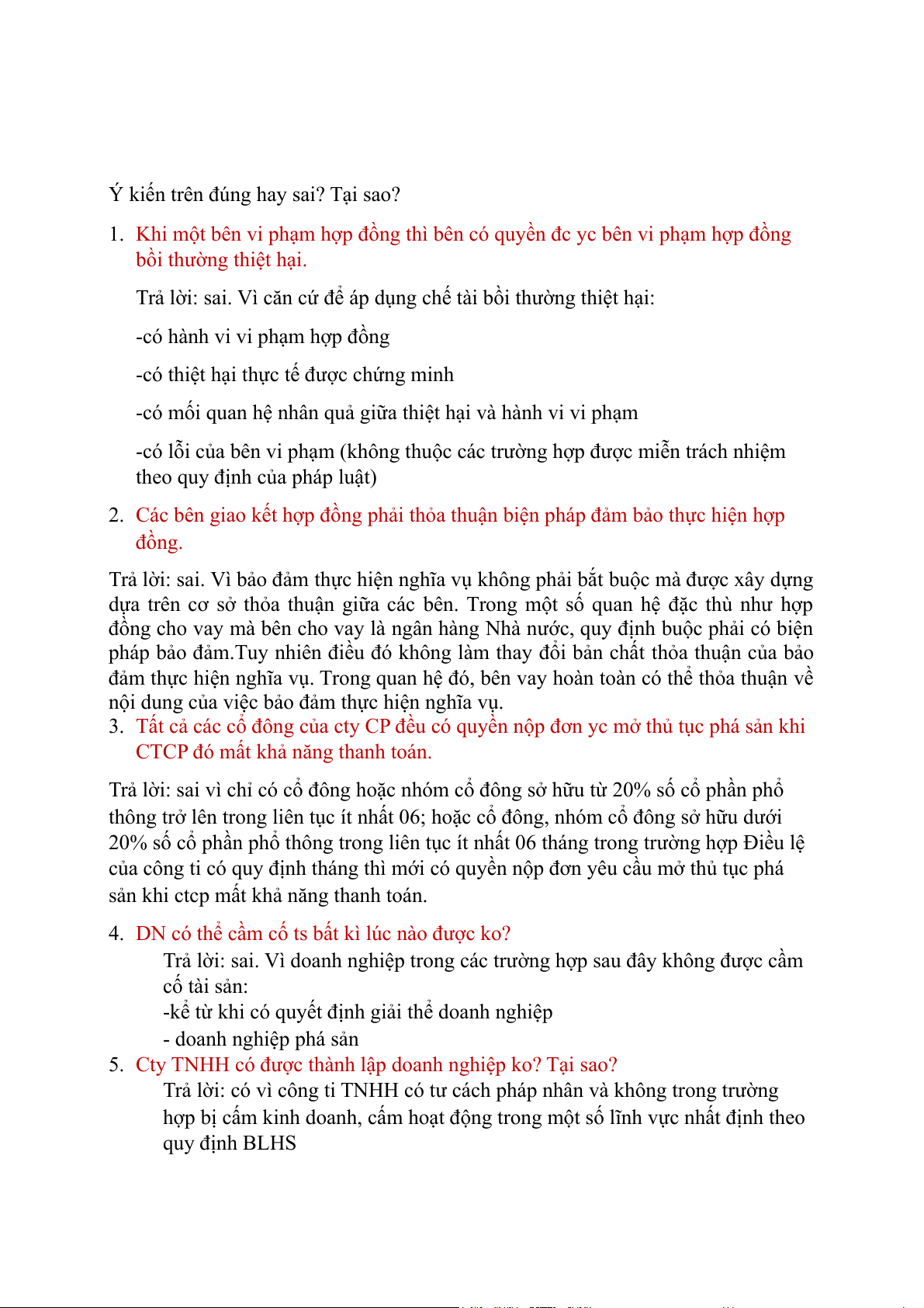 Trả lời: sai vì doanh nghiệp phá sản là doanh nghiệp mất khả năng thanh toán