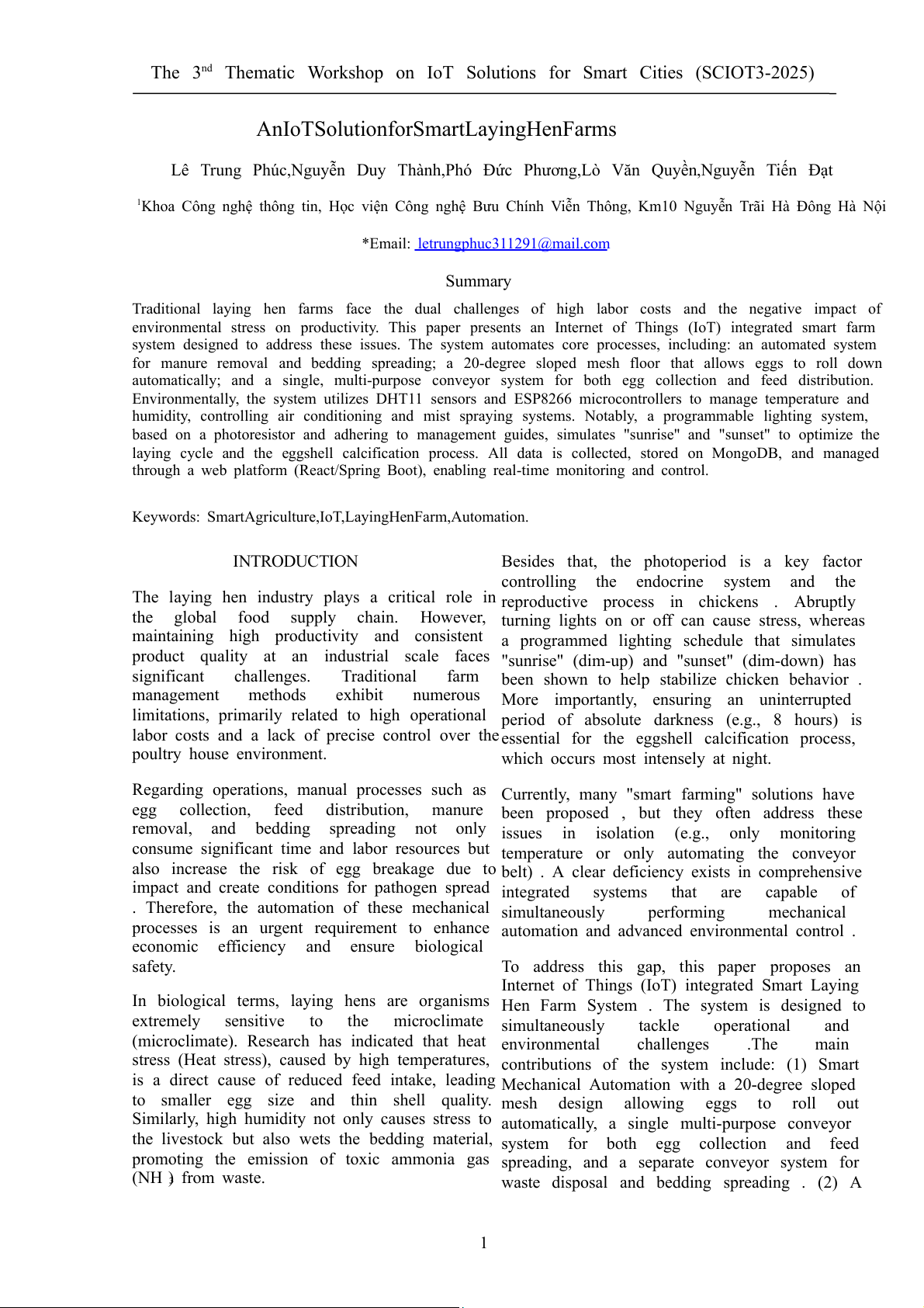 Keywords: Smart Agriculture, IoT, Laying Hen Farm, Automation. INTRODUCTION