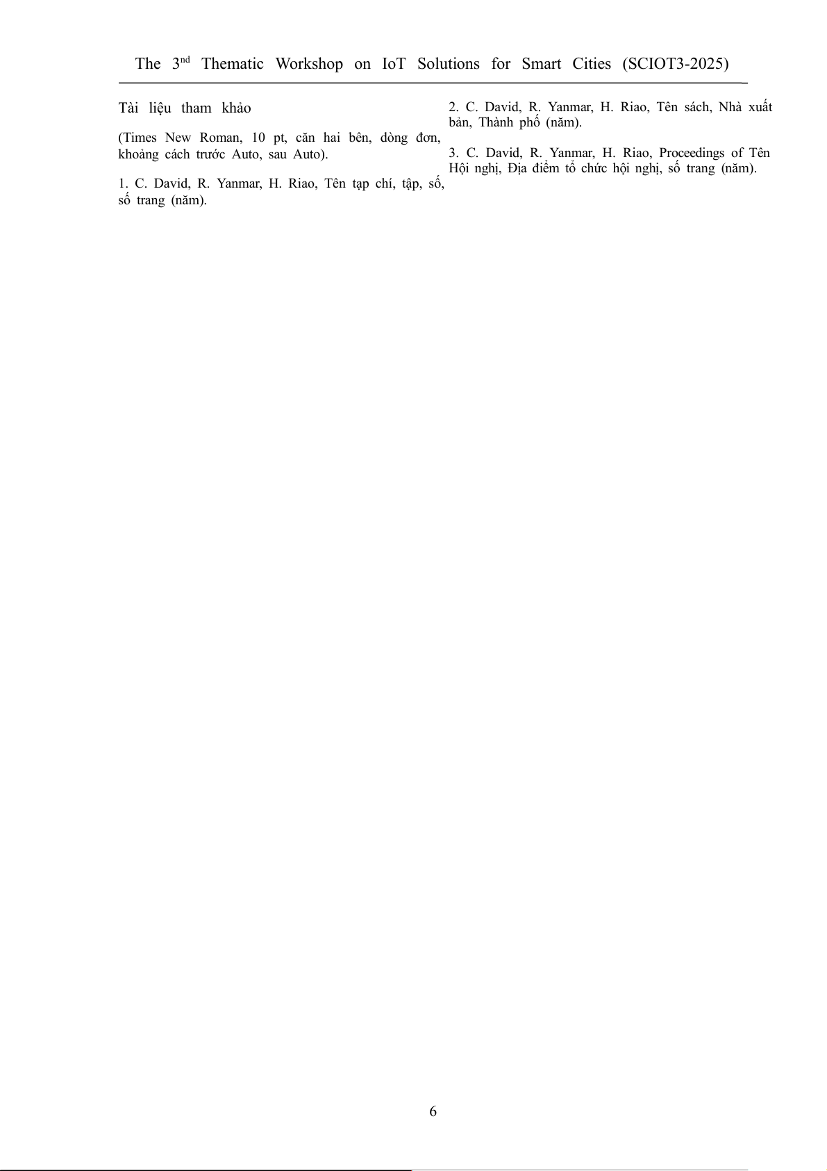 1. C. David, R. Yanmar, H. Riao, Tên tạp chí, tập, số, số trang (năm). 6