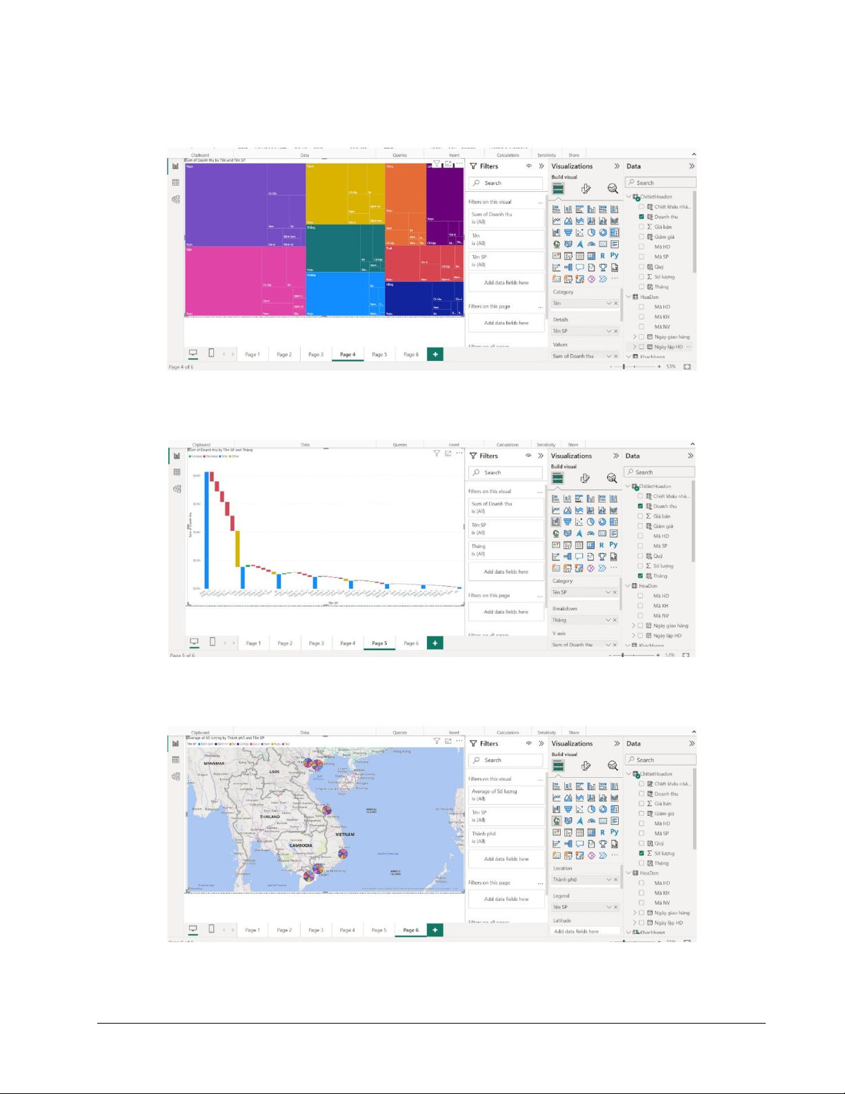 Bước 1: Tạo biểu đồ Treemap với các dữ liêu như sau đ ̣ ể thể hiên doanh thu c ̣ ủa nhân viên theo sản phẩm Hình 20