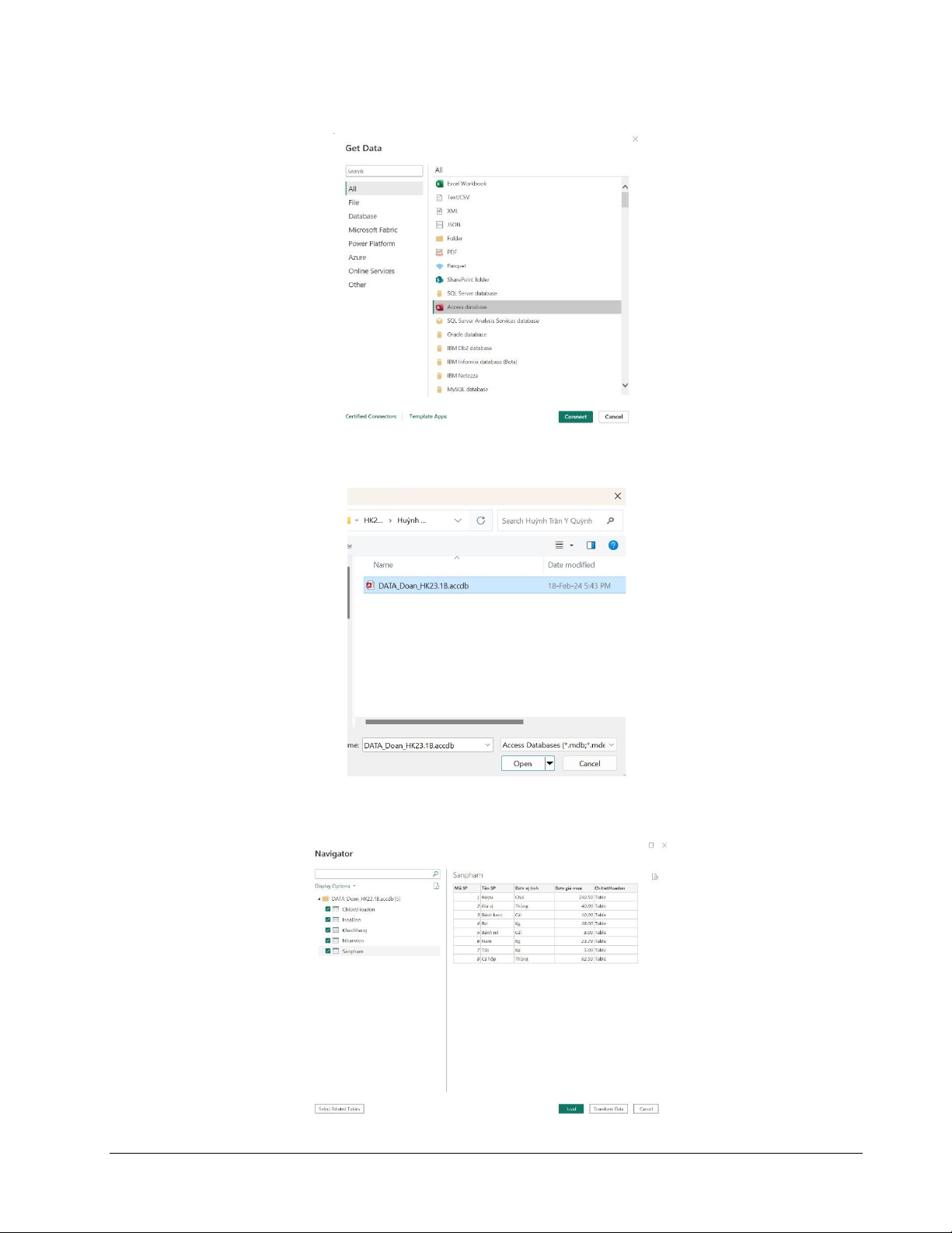 Bước 2. Nhấn vào access database và sau đó nhấn connect Hình 7 Bước 3. Chọn file access Hình 8