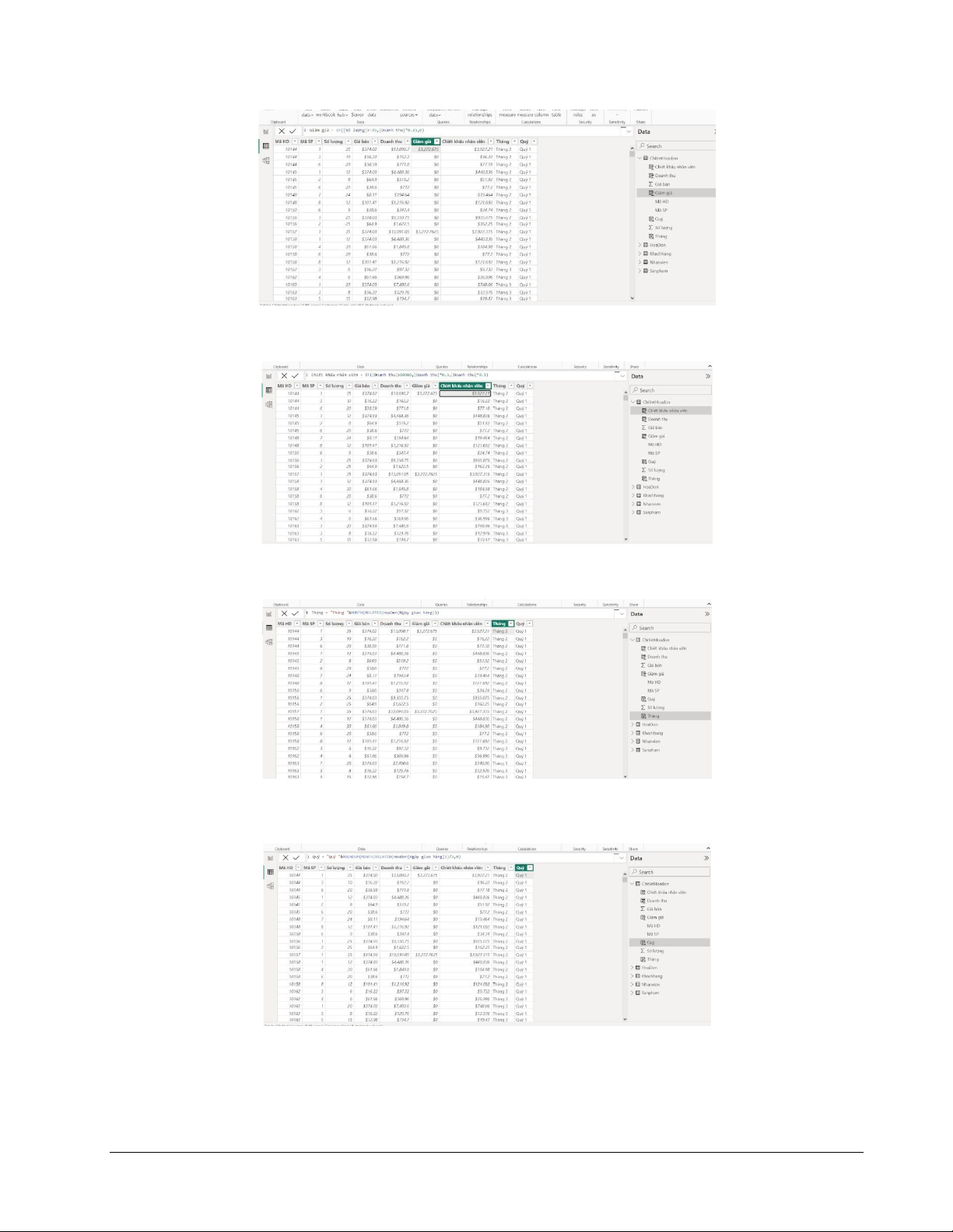 Thiết lập một số công thức (Create Calculated Columns)
