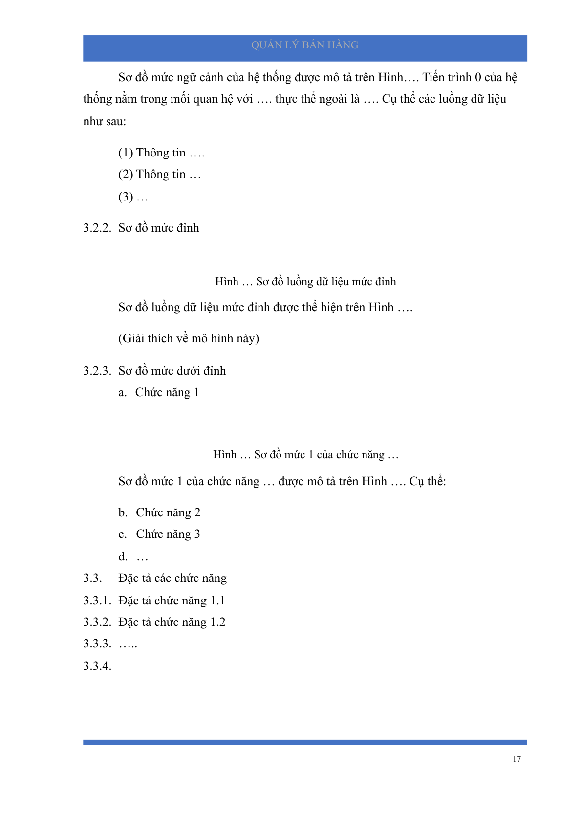 3.3.2. Đặc tả chức năng 1.2 3.3.3. ….. 3.3.4. 17 QUẢN LÝ BÁN HÀNG 18 QUẢN LÝ BÁN HÀNG