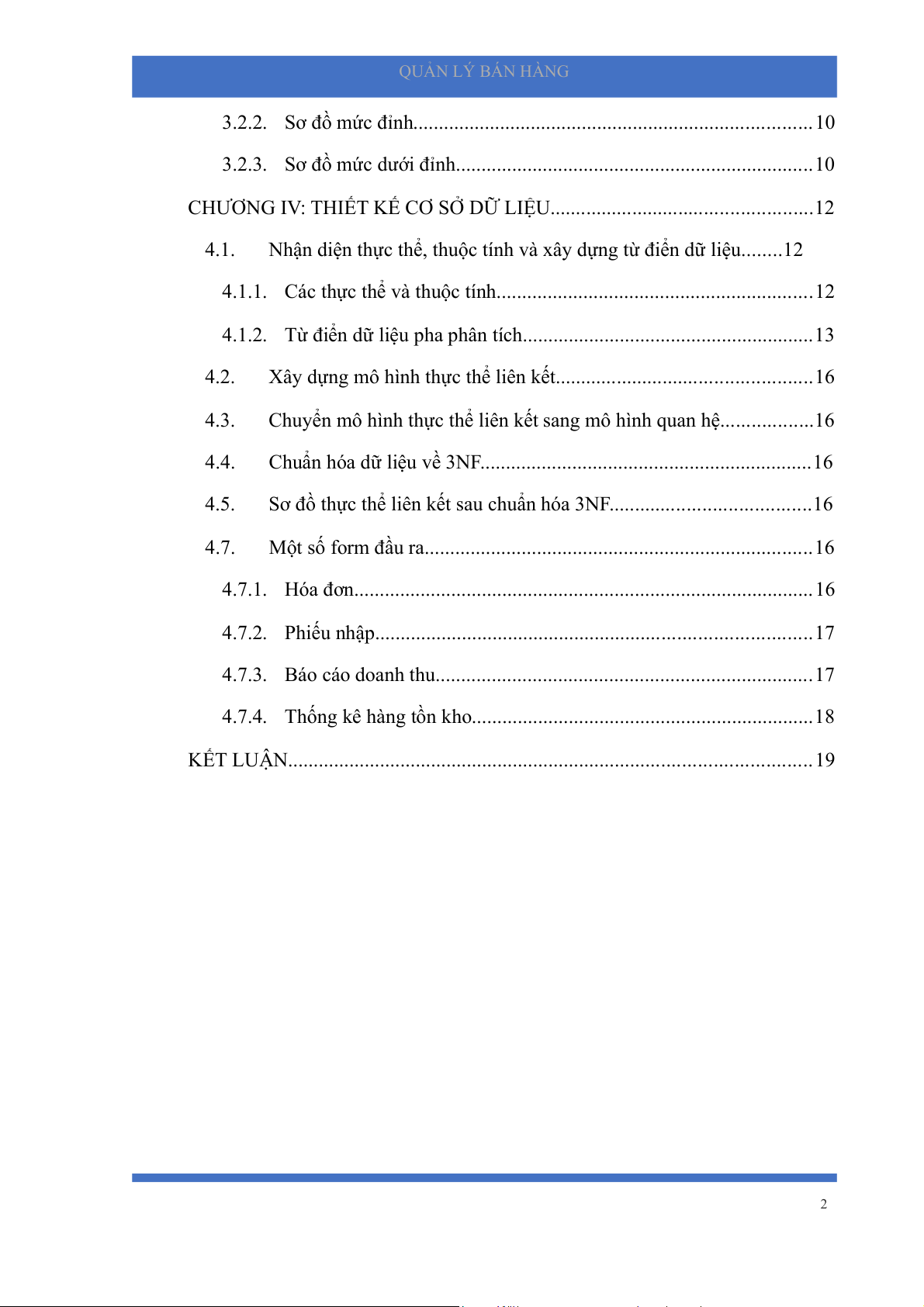 KẾT LUẬN......................................................................................................19 2 QUẢN LÝ BÁN HÀNG DANH MỤC HÌNH VẼ
