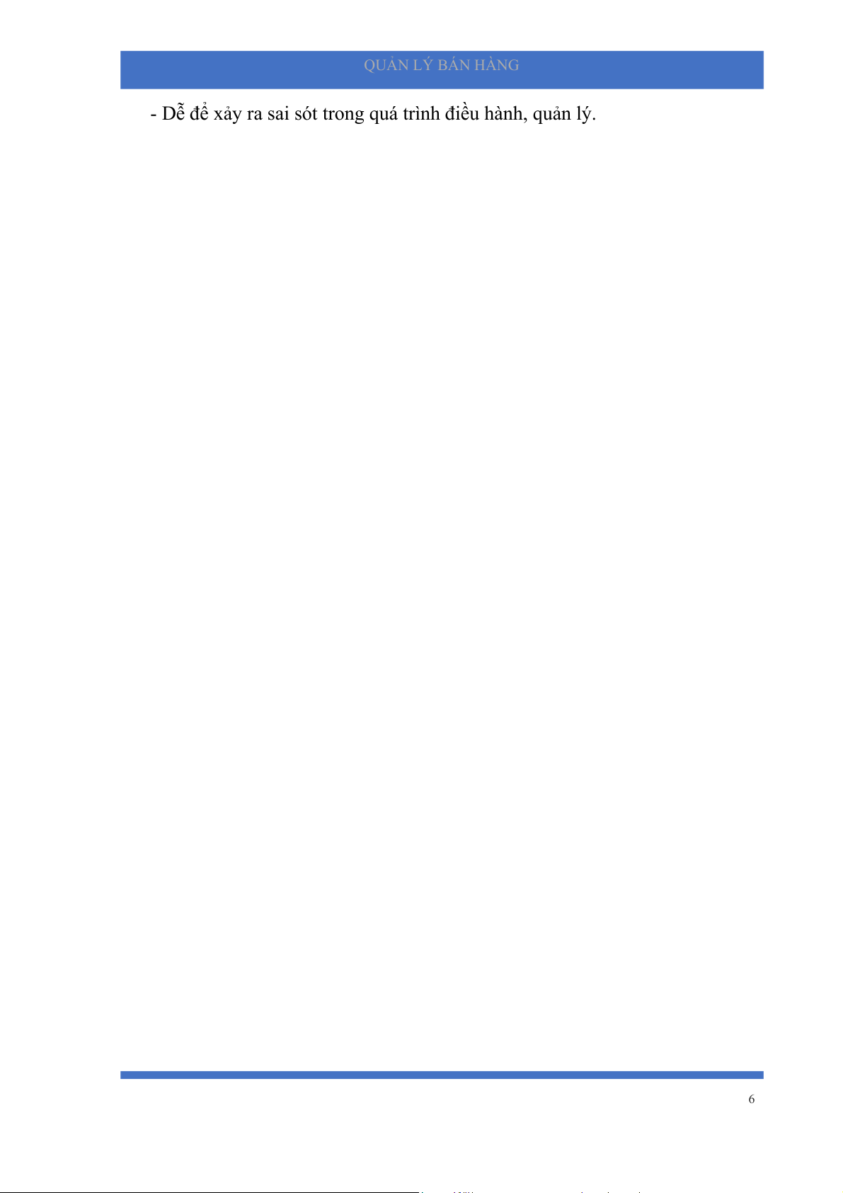- Tìm kiếm và quản lý thông tin khó khăn. 5 QUẢN LÝ BÁN HÀNG