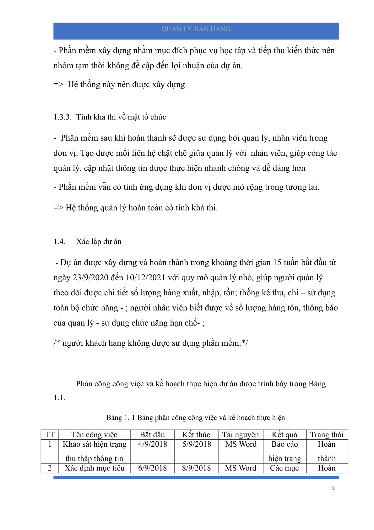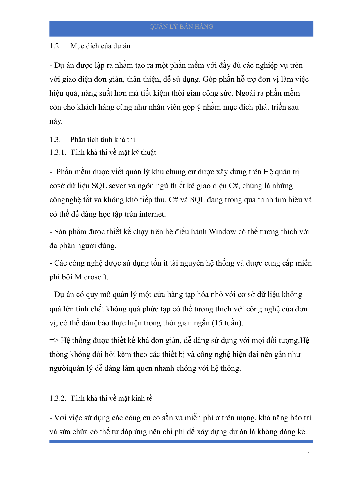 và sửa chữa có thể tự đáp ứng nên chi phí để xây dựng dự án là không đáng kể. 7 QUẢN LÝ BÁN HÀNG