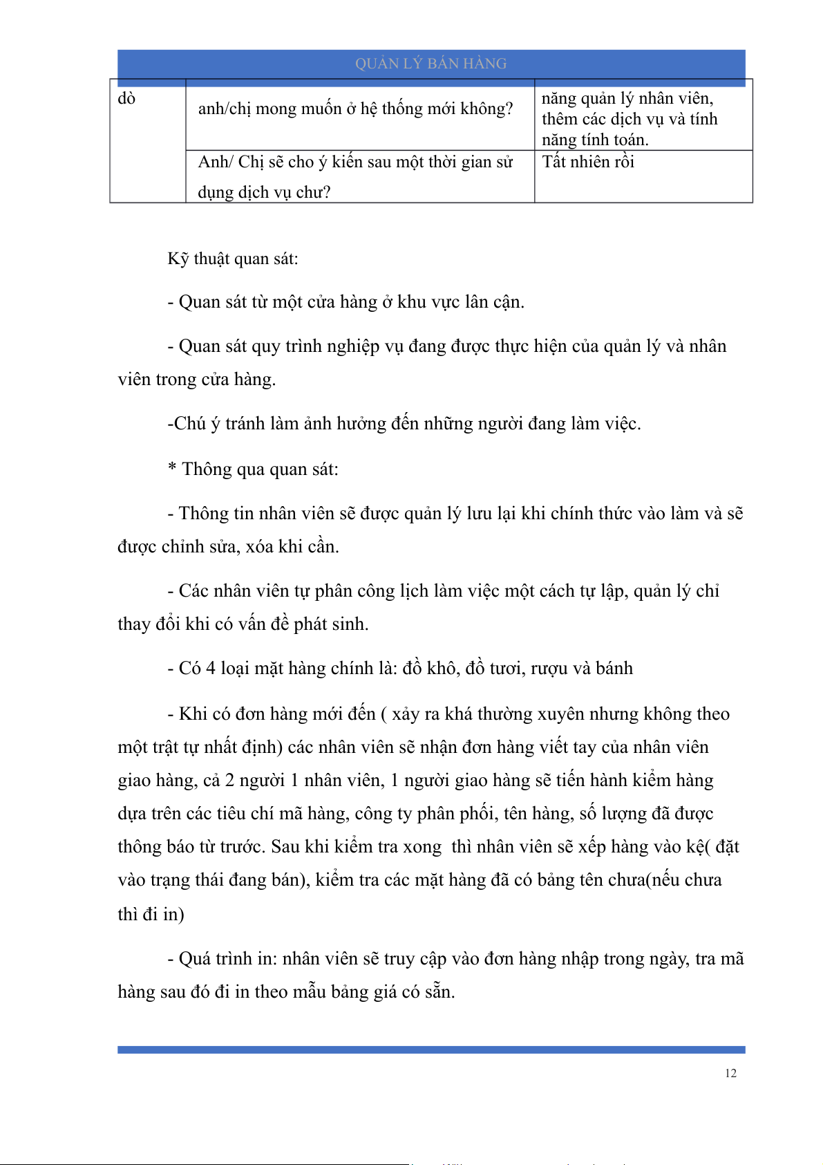 - Quan sát quy trình nghiệp vụ đang được thực hiện của quản lý và nhân viên trong cửa hàng.