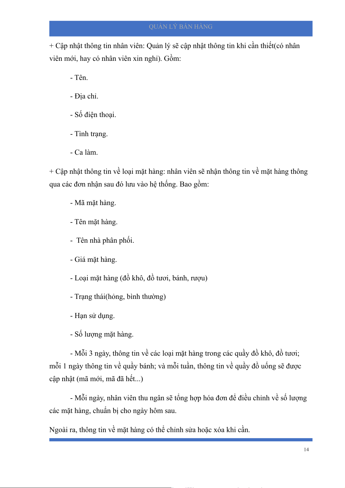 Phần mềm cần có các chức năng sau: **Cập nhật thông tin: 13 QUẢN LÝ BÁN HÀNG
