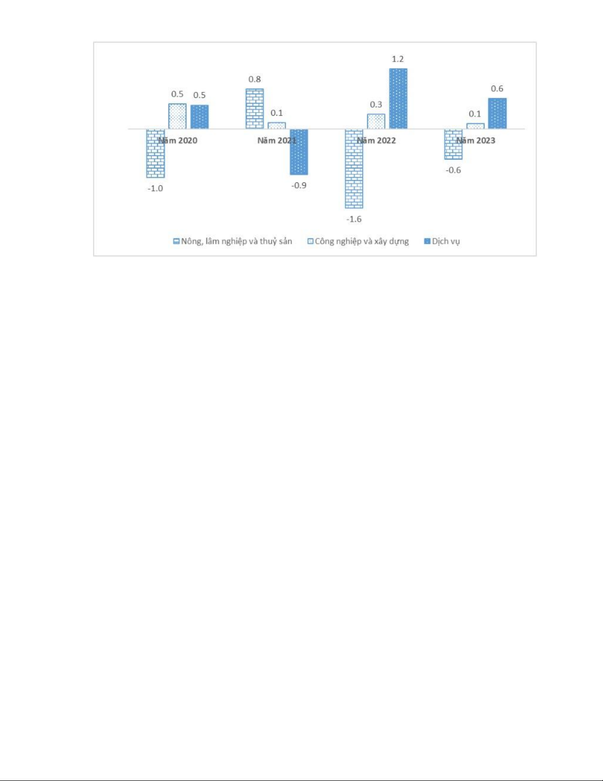 công nghiệp và xây dựng tăng 0,1 điểm phần trăm; khu vực dịch vụ tăng 0,6 điểm phần trăm.
