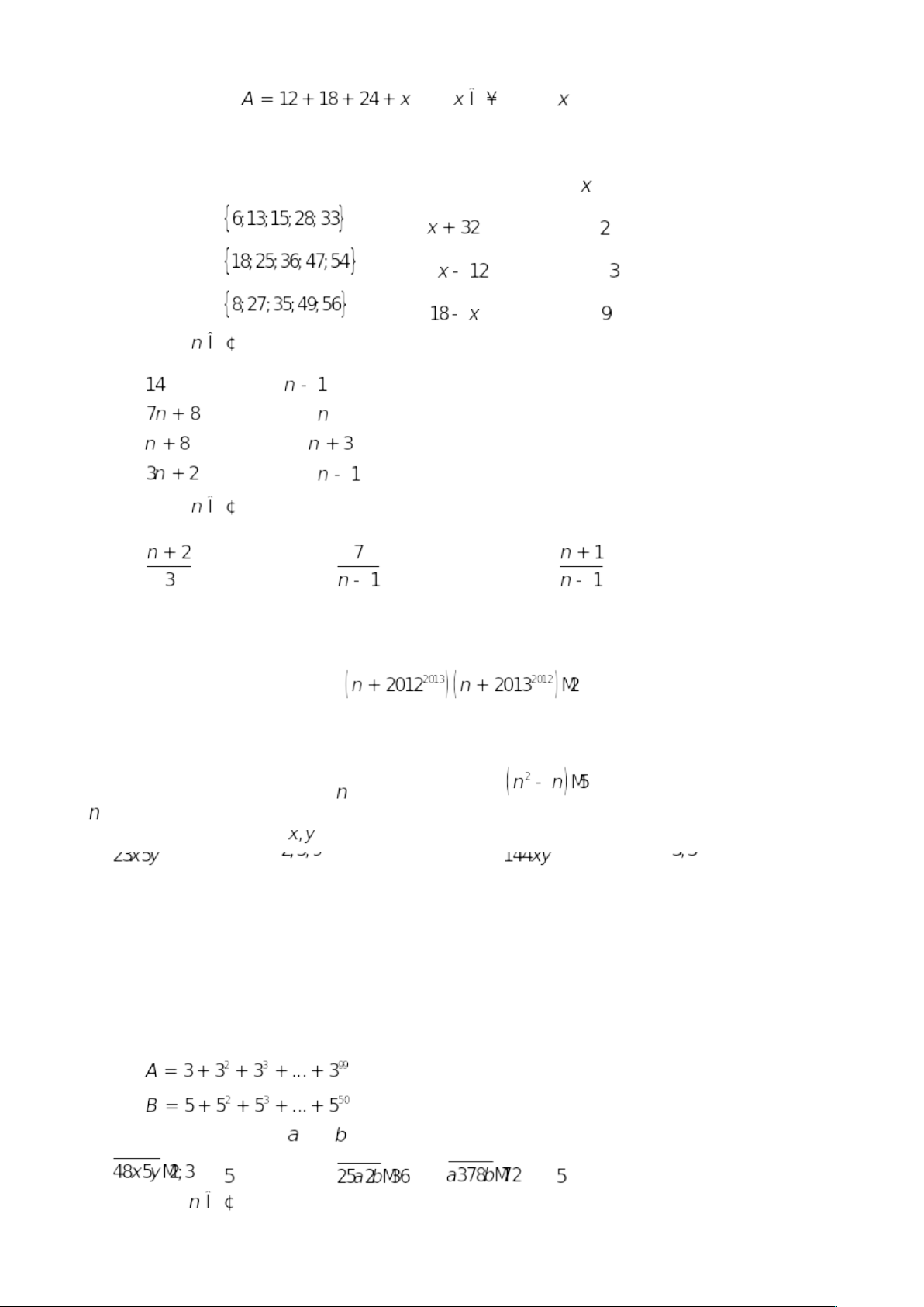 Bài 2: Áp dụng tính chất chia hết của một tổng, hãy tìm thuộc