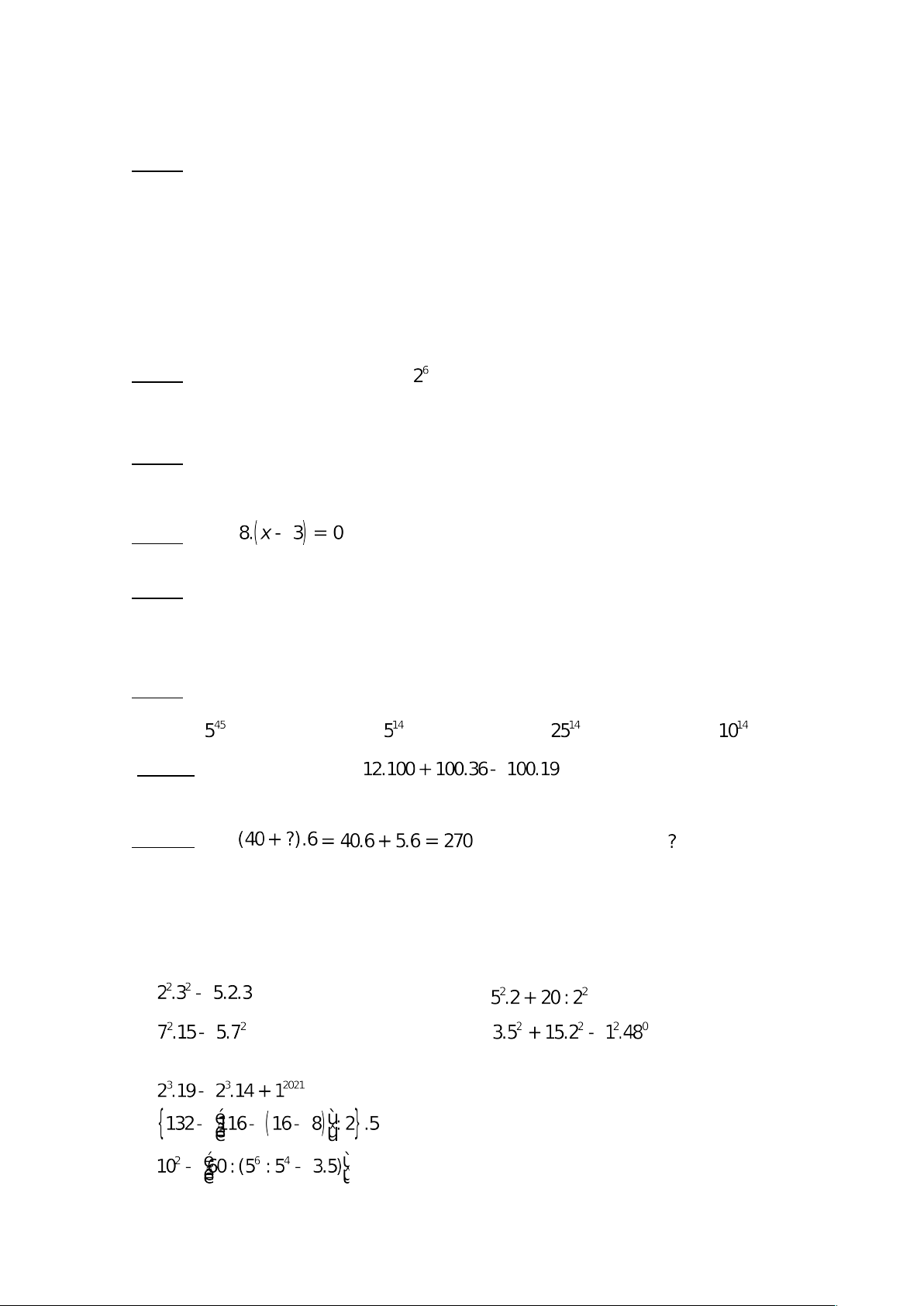 BUỔI 9: ÔN TẬP CHUNG VỀ CÁC PHÉP TOÁN TRONG TẬP N VÀ N* BÀI TRẮC NGHIỆM