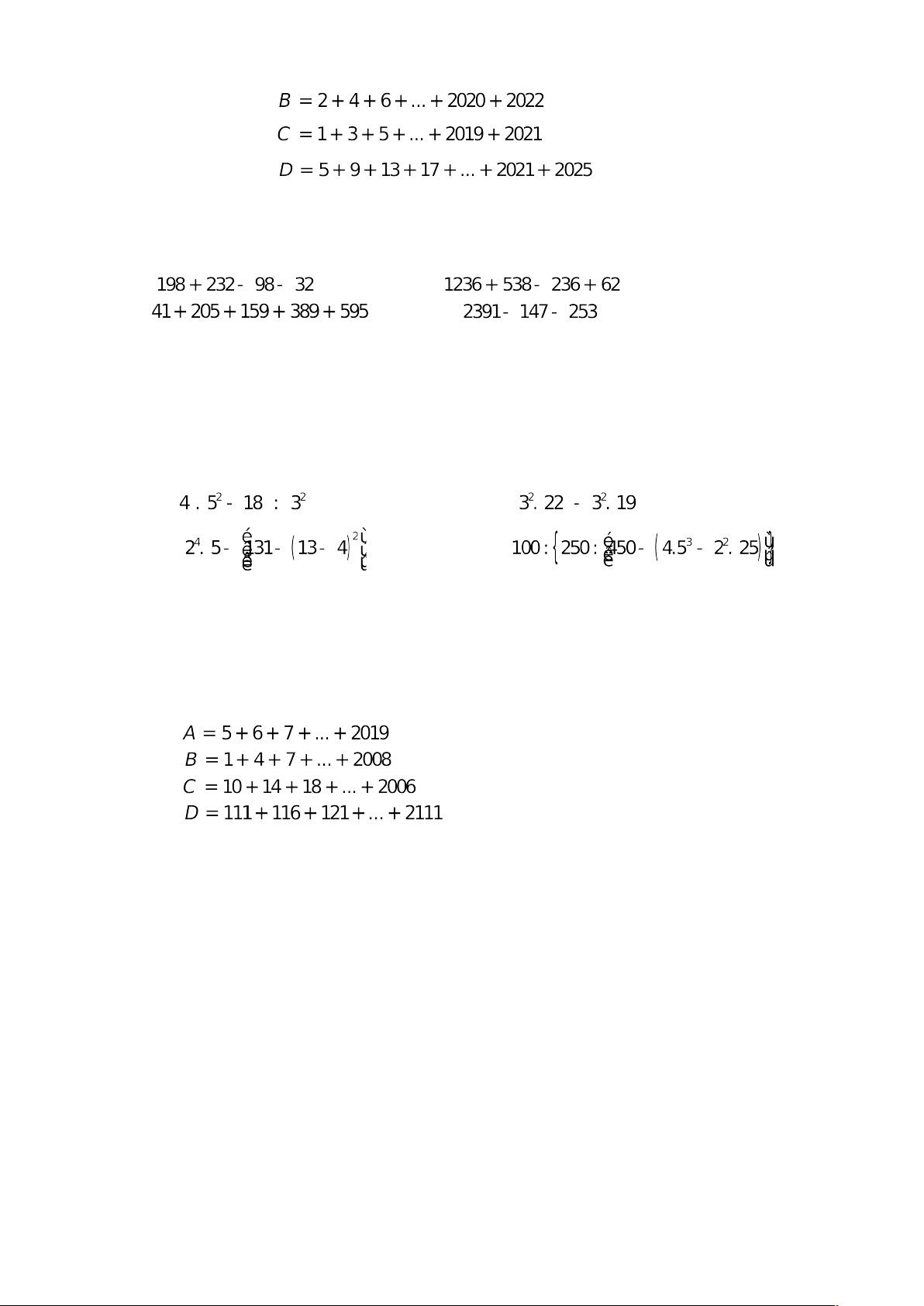 phẩm. Tính tổng số sản phẩm cả 2 phân xưởng sản xuất được trong 1 ngày. Bài 5: Tính tổng a) . b) . c) . d) .