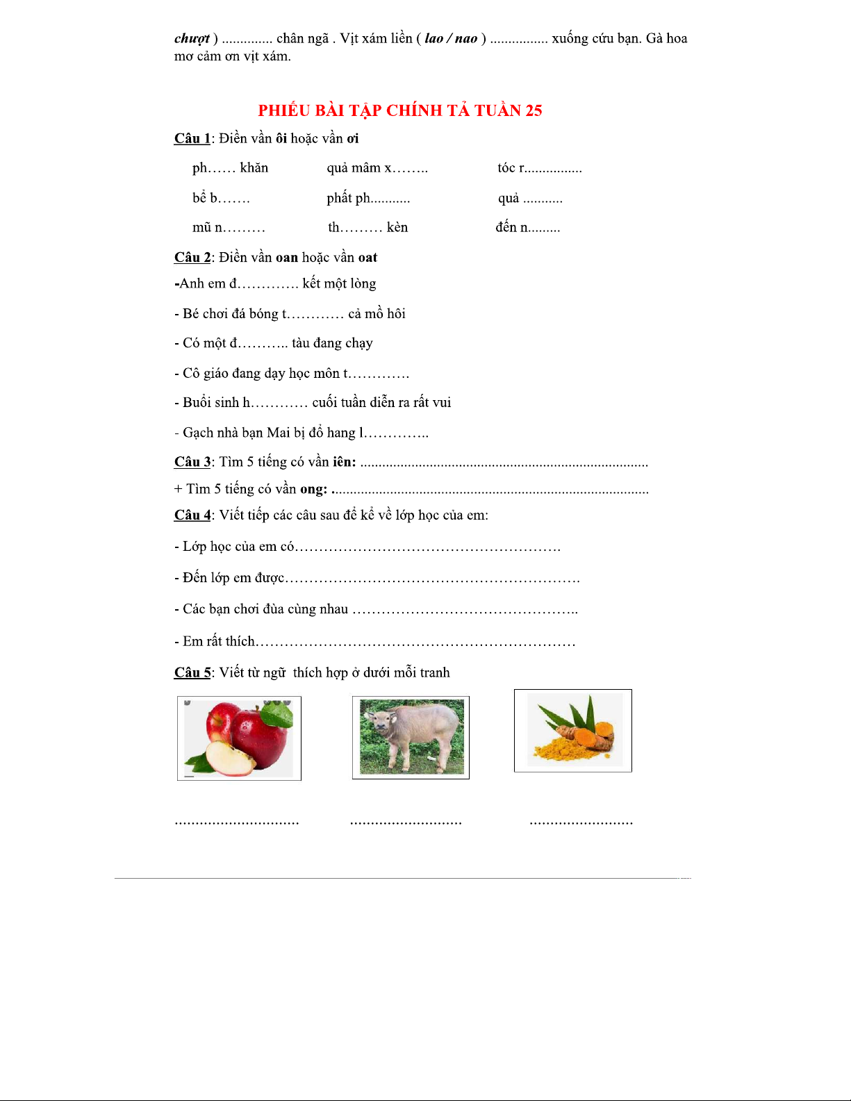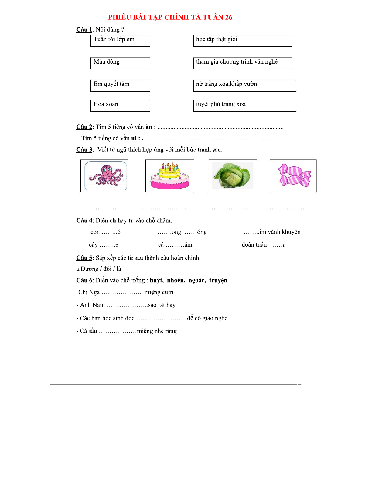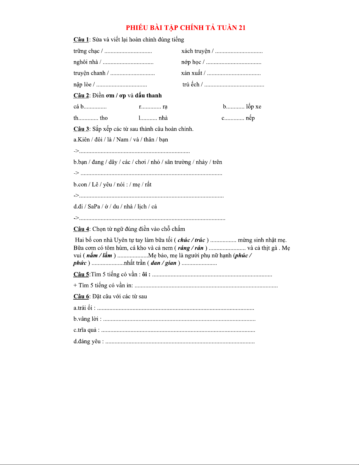 Phiếu Bài Tập Chính Tả Lớp 1 - Kì 2 (Tuần 21 đến 32)
