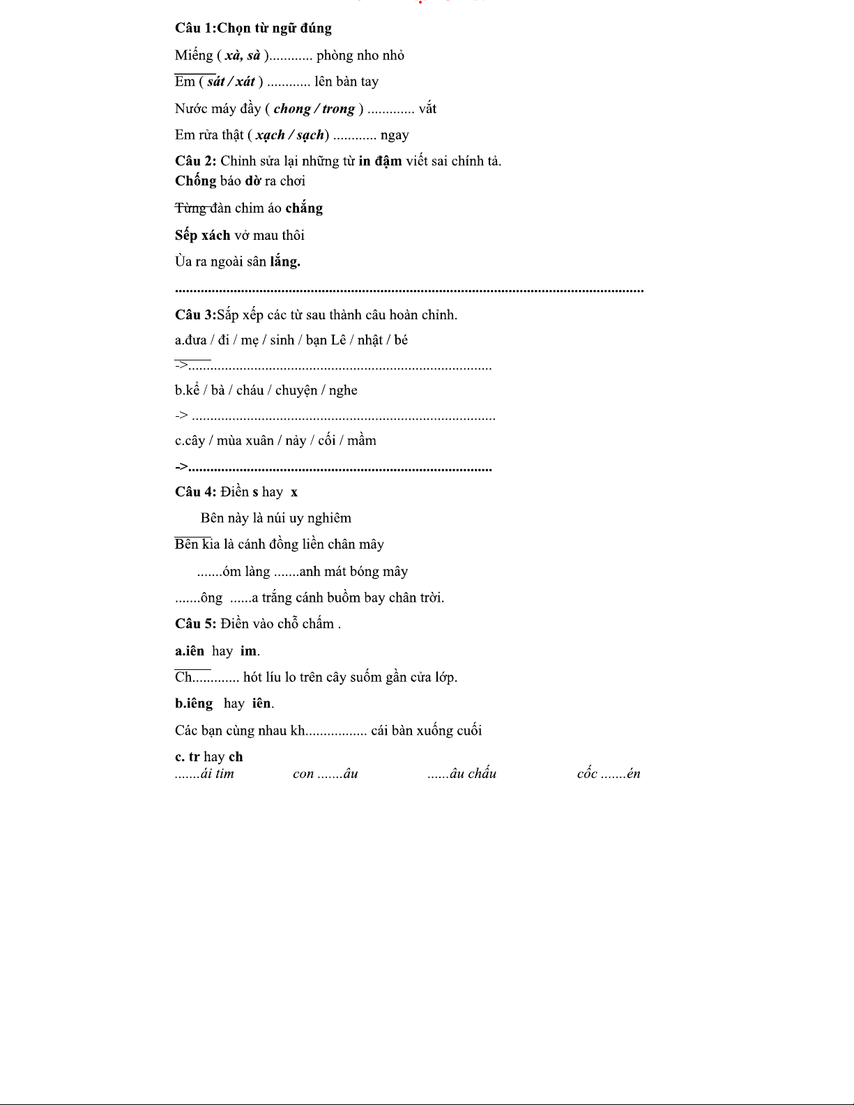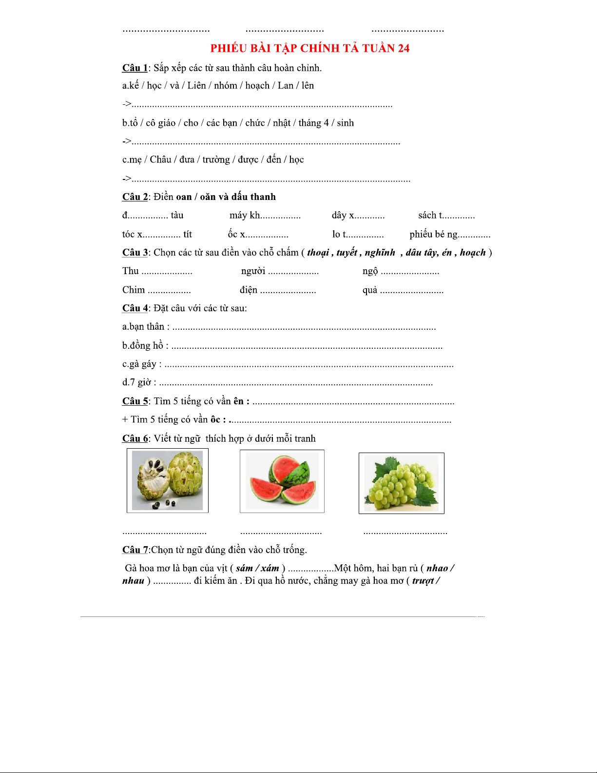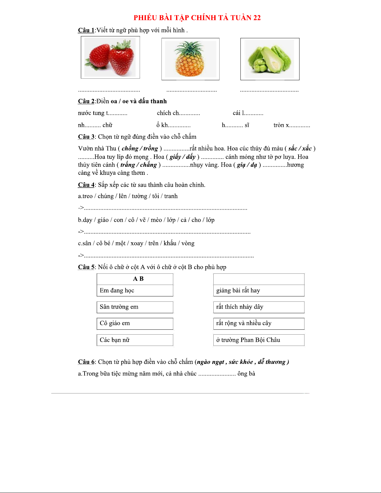 Phiếu Bài Tập Chính Tả Lớp 1 - Kì 2 (Tuần 21 đến 32)