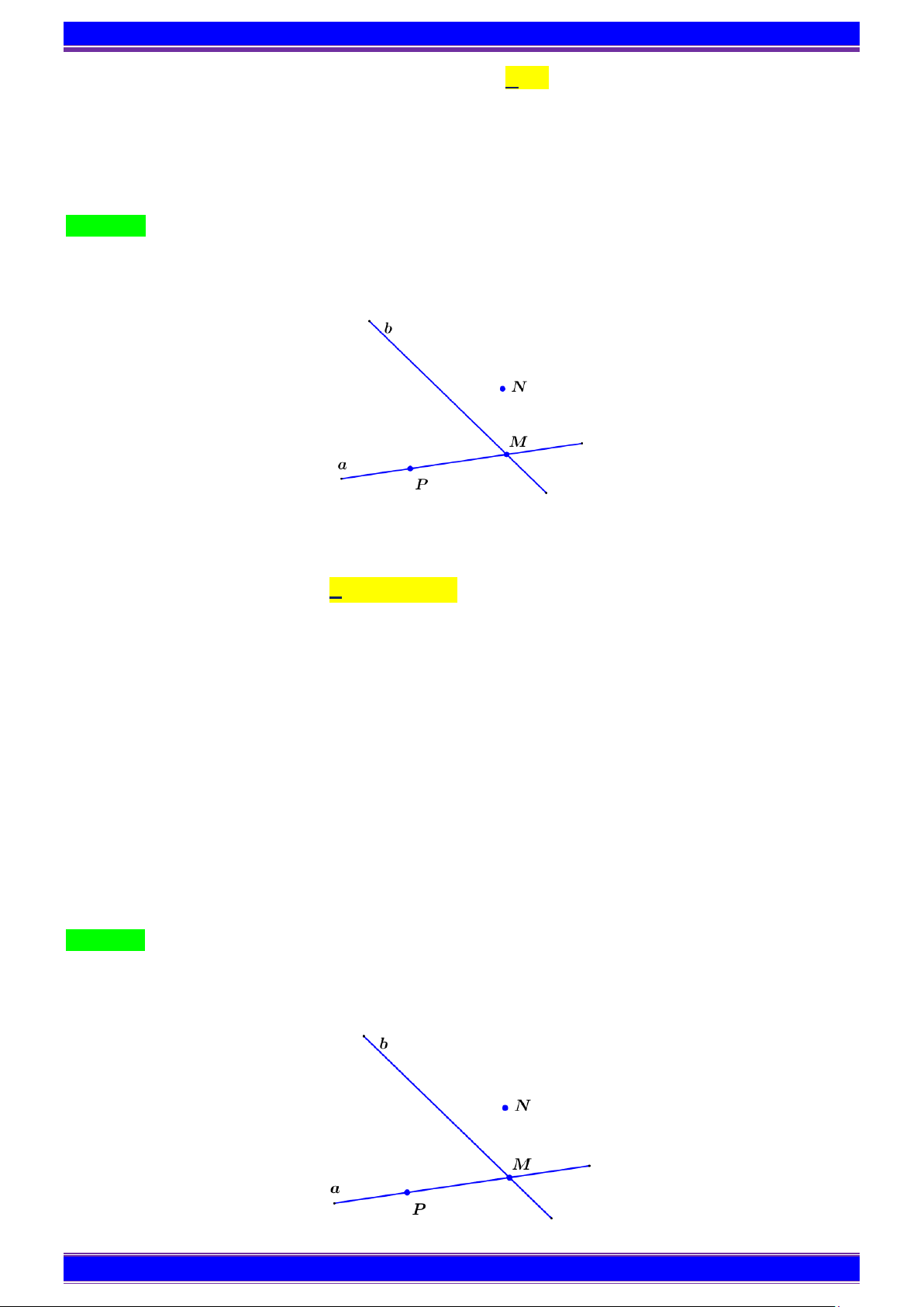 b c nên có hai đường thẳng thỏa mãn Đáp án C. Câu 12: Cho hình vẽ Chọn câu sai A. M ∈ ; a M ∈b . B. N ∉ ; b N ∈ a .