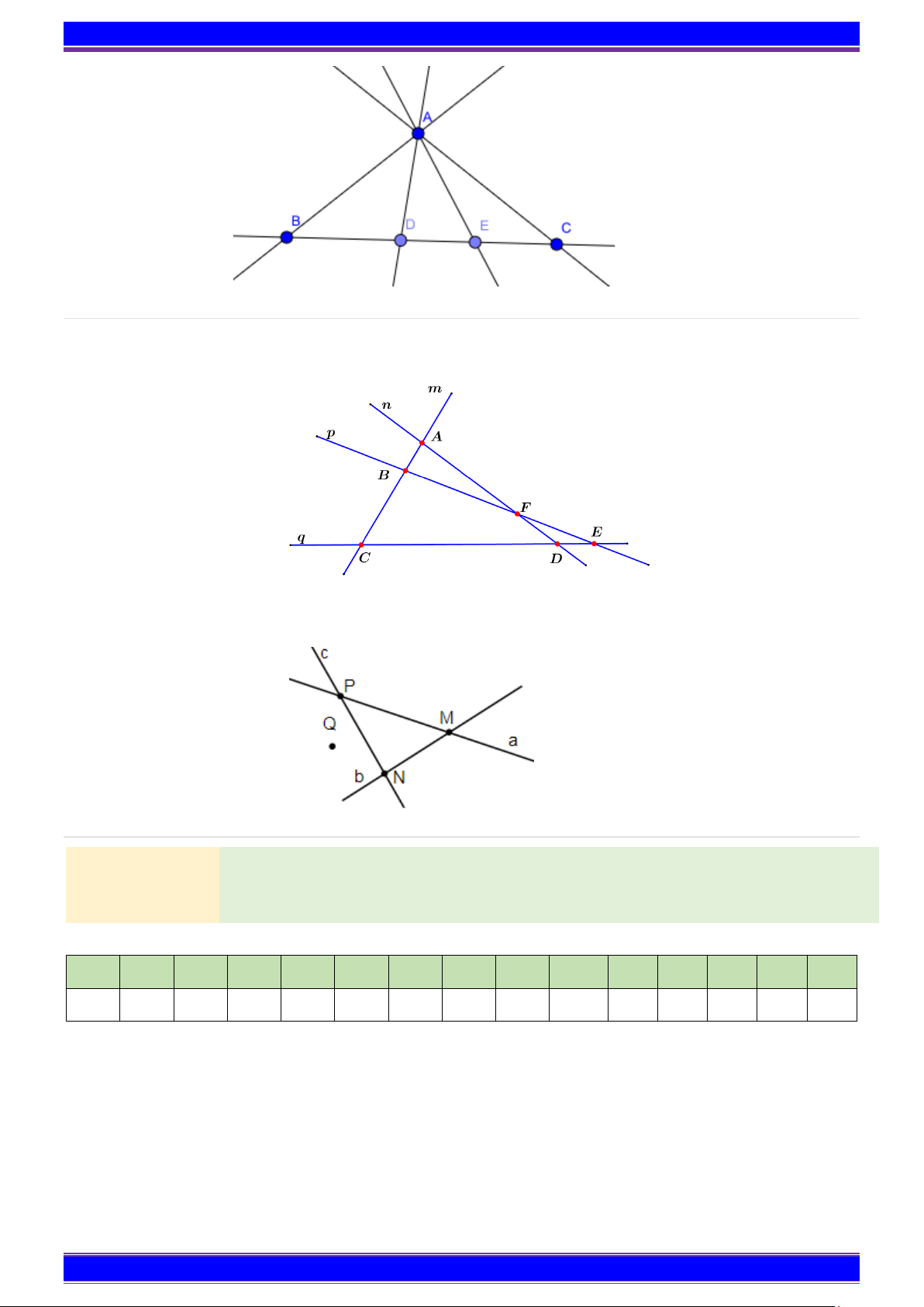 Bài 1 Trong hình vẽ sau, có bao nhiêu đường thẳng đi qua ba điểm?