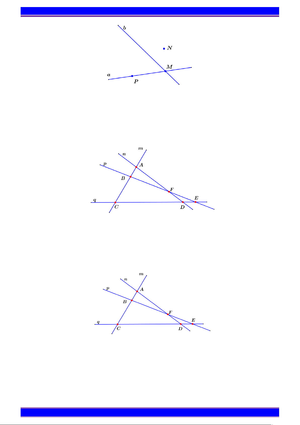 Bài 5. Cho hình vẽ bên. Đường thẳng b và c cùng đi qua điểm nào và không cùng đi qua điểm nào? CHƯƠNG I KIỂM TRA