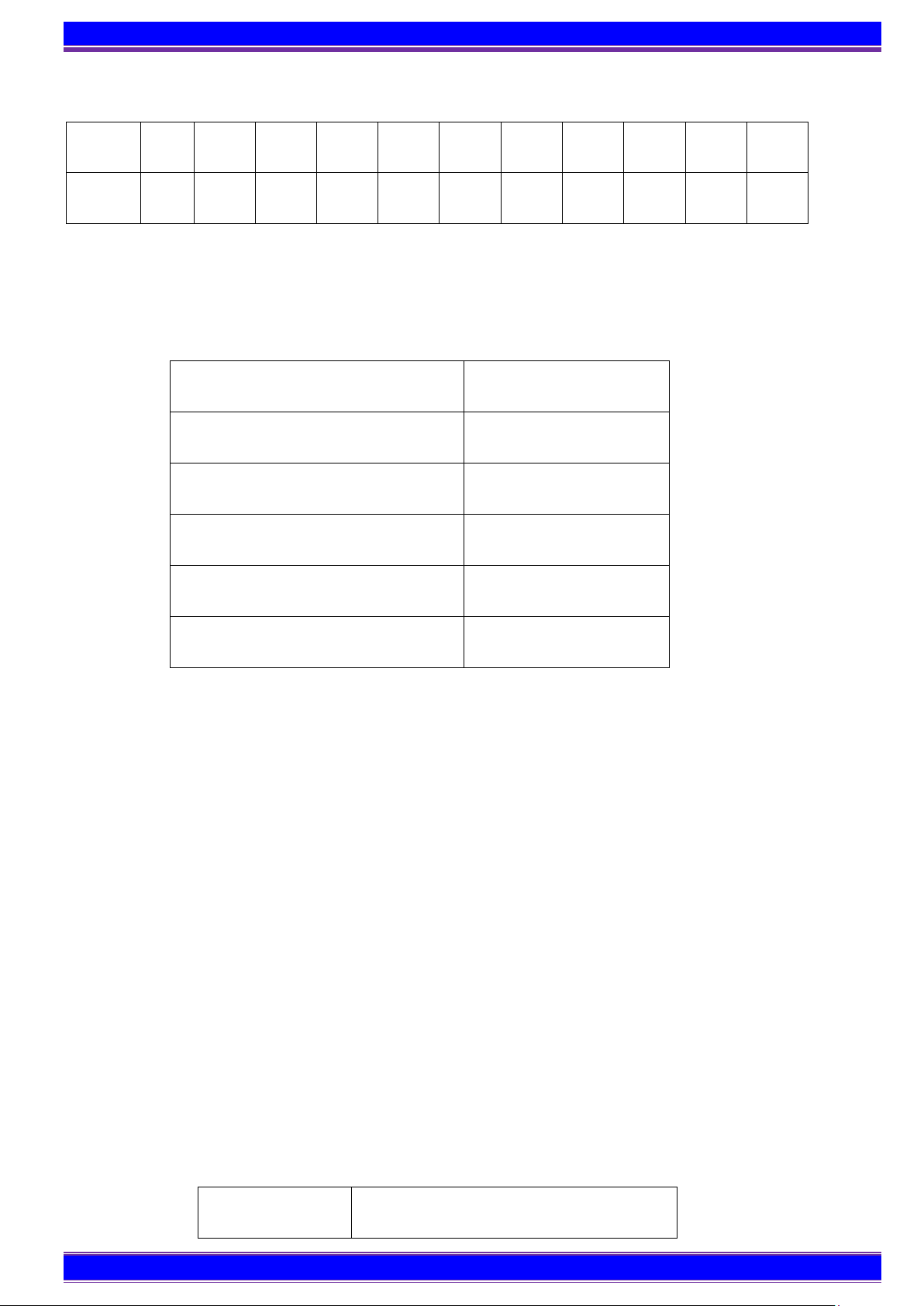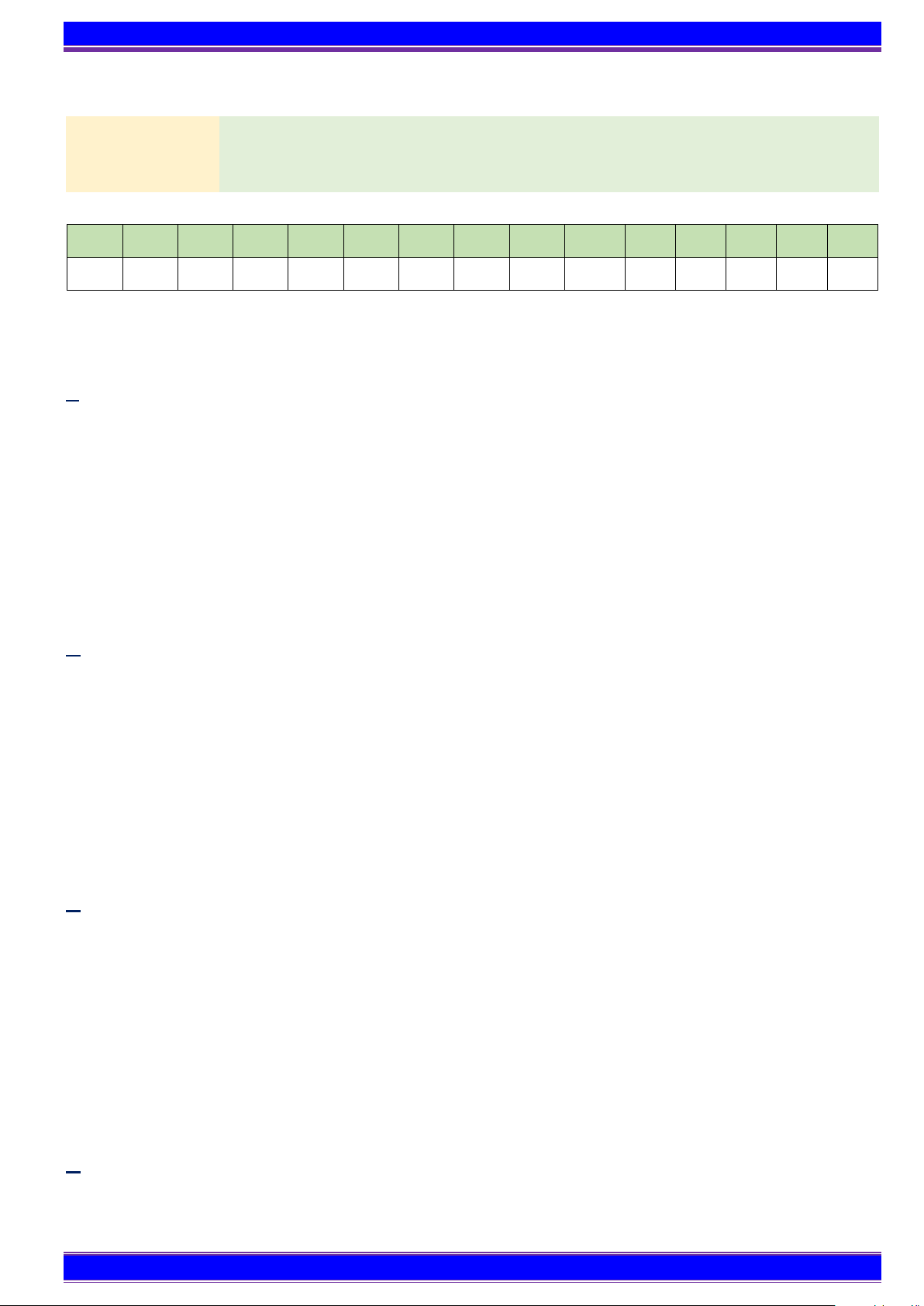 Câu 11. Thầy giáo theo dõi thời gian giải một bài toán của một nhóm 10 học sinh trong lớp và ghi lại trong bảng sau: Thứ tự số 1 2 3 4 5 6 7 8 9 10 học sinh Thời gian 10 5 7 9 7 8 7 9 10 15 (phút)
