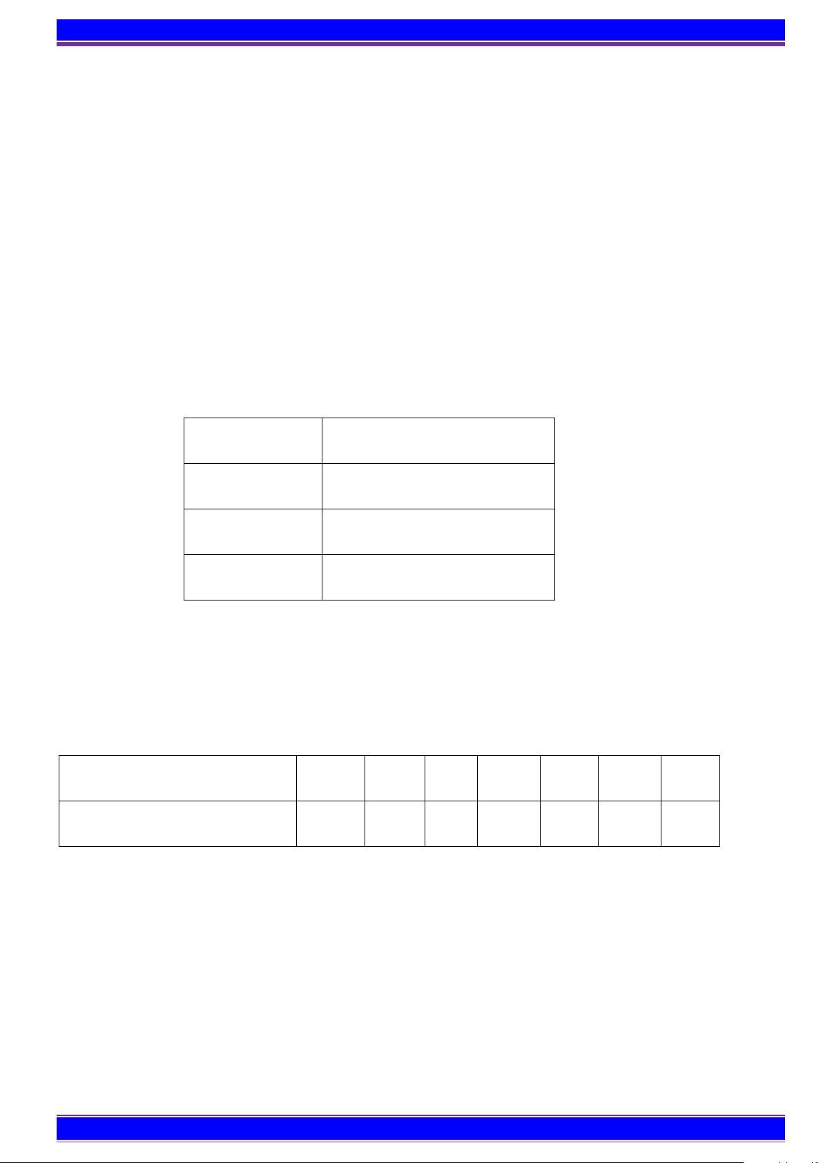 Câu 15. Xếp loại thi đua ba tổ của lớp 6A được thống kê như sau: Tổ Điểm 10 Điểm 9 Điểm 8 Tổ 1 Tổ 2 Tổ 3