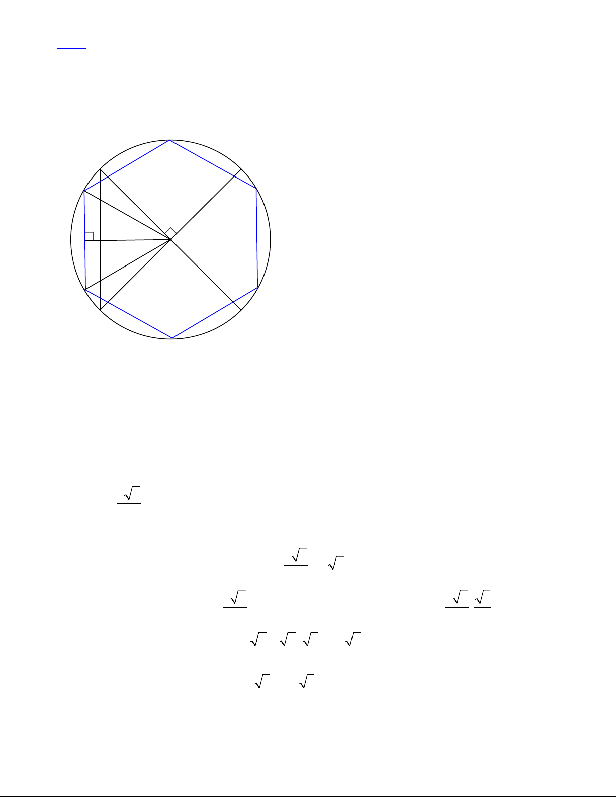 Bài 9. Cho một hình lục giác đều và một hình vuông cùng nội tiếp một đường tròn. Biết rằng hình vuông